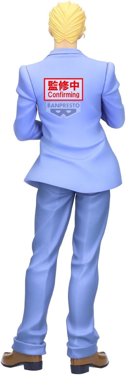 Bandai Spirits Banpresto is proud to announce their newest release Mometria Yoshikage Kira from JoJo's Bizarre Adventure: Diamond is Unbreakable! Standing at approximately 8.7" tall, Kira is seen in their iconic pose. Be sure to collect this and enhance your display with other incredible Banpresto figures! The product box will have a Bandai Namco warning label, which is proof that you are purchasing an officially licensed product.