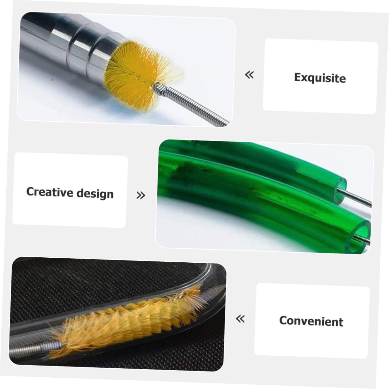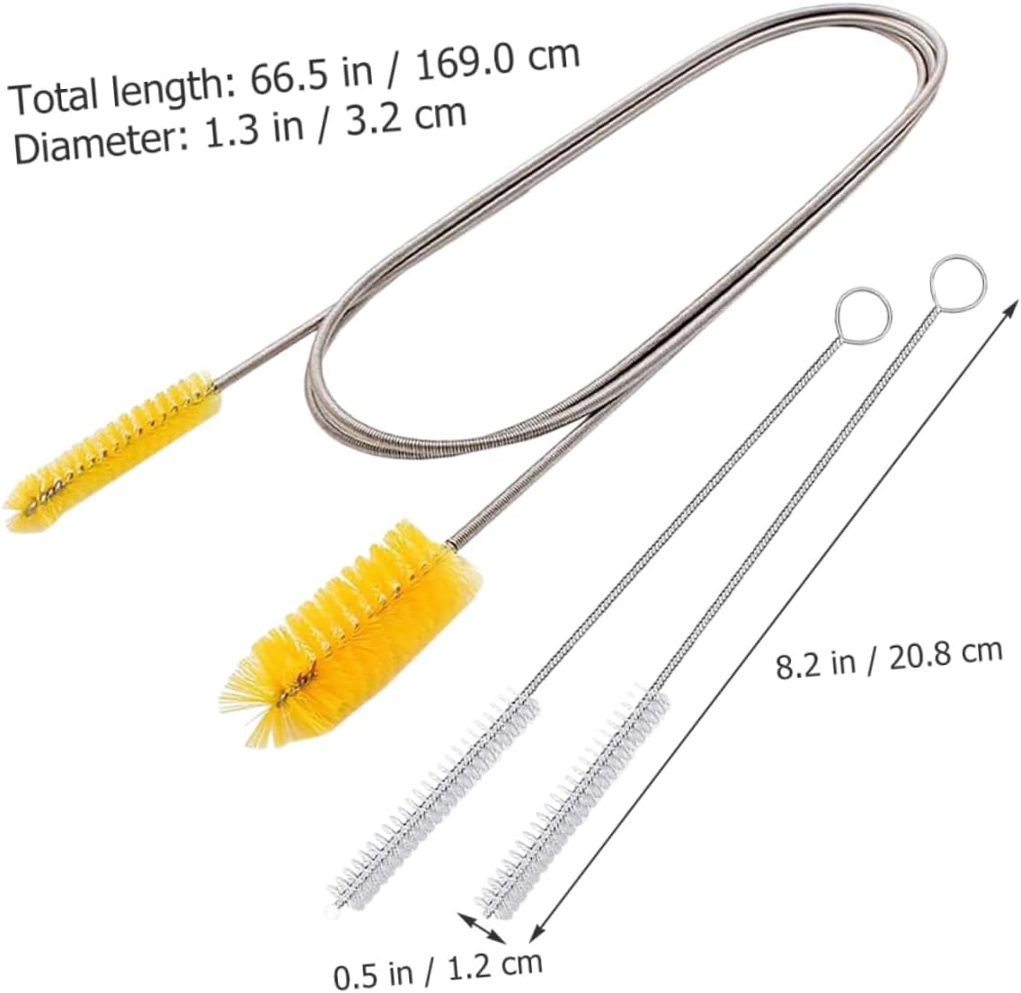 Package Include 4 x Double-side Brush 8 x Single-side Features -Color:Silver water brush -Size:20.80X1.20X1.20cm/8.17X0.47X0.47in(single-side brush) fish tank brush -Material:Nylon, stainless steel fish tank cleaning supplies -Size:169.00X3.20X3.20cm/66.42X1.26X1.26in(double-side brush) aquarium cleaning brush -Exclusive innovation, brush design, brush for high-density high-grade nylon yarn, elasticity gravel. -High-density bristles 360 rotation, all-round cleaning brush. for pet water dispensers and home kitchens flexible water brush -360° rotation is easy to use, , stainless steel handle. You can use it with confidence double cleaning brush. -Creative appearance and workmanship popularity and practicality, and it is loved by spring cleaning brush. -Stainless steel tube cleaning brush single double flexible aquarium tank pump hose brush spring brush.Goods Descriptionaquarium cleaning tools This item is spring cleaning brush.aquarium cleaning brush They are made of stainless steel handle and nylon brush, and .tube brush Great aquarium cleaning accessories.water brush for cleaning water , filters, outlet inlet , connector, and other hard to reach places