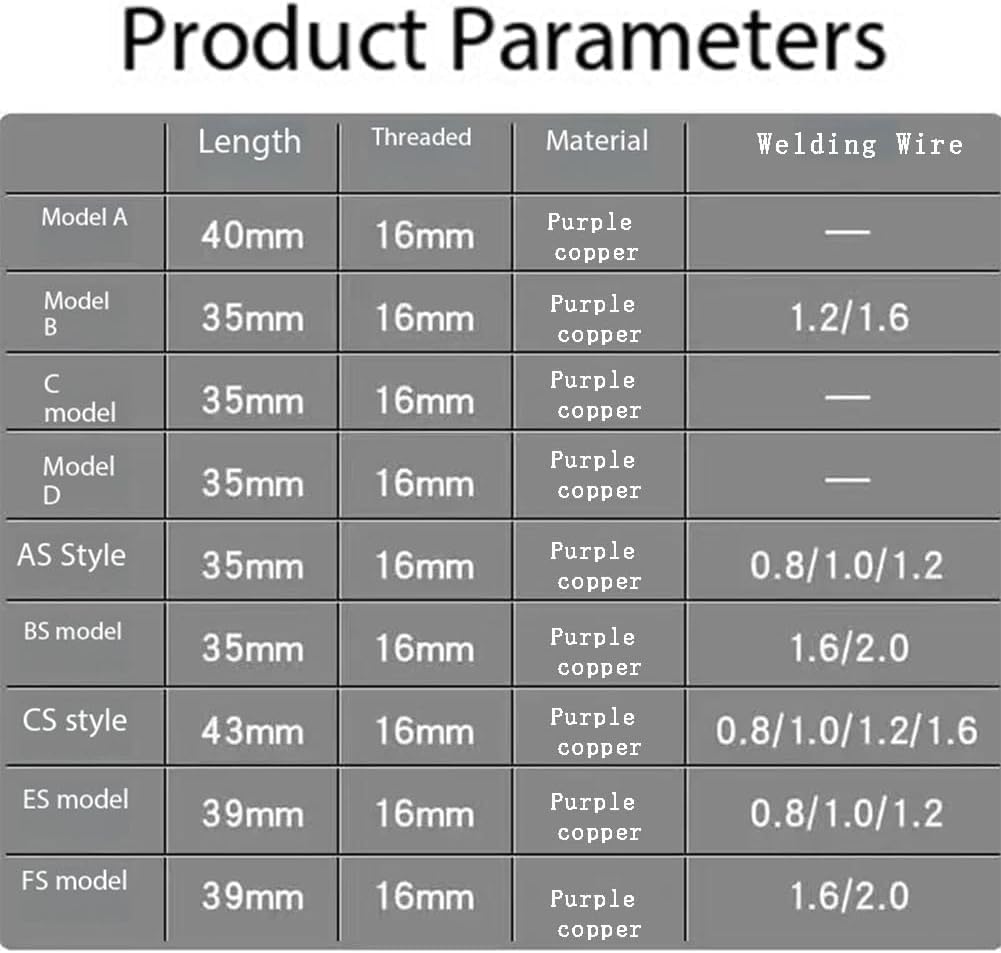 Product Description8 Styles Laser Welder Nozzles Available for different Application : AS-12, BS-16, CS-12, ES-12, FS-16, C, AS-20D, Cutting Nozzle[Selected Purple Copper] : Industrial grade thickened purple copper material nozzle, high hardness, wear-resistant, high temperature and corrosion resistance, excellent thermal conductivity, excellent heat dissipation performance, able to effectively transfer heat to maintain the temperature stability in the welding process, prolonging the service life of the nozzle, High Quality and Durable.[No Blocking] : High concentricity, smooth wire feeding, residue is not easy to block, smooth welding, greatly improving the welding efficiency, welding effect is beautiful.[Easy to replace] : Small size, light weight, easy to carry or store; easy to install and disassemble, cleaning and maintenance is more simple to reduce downtime and maintenance costs.