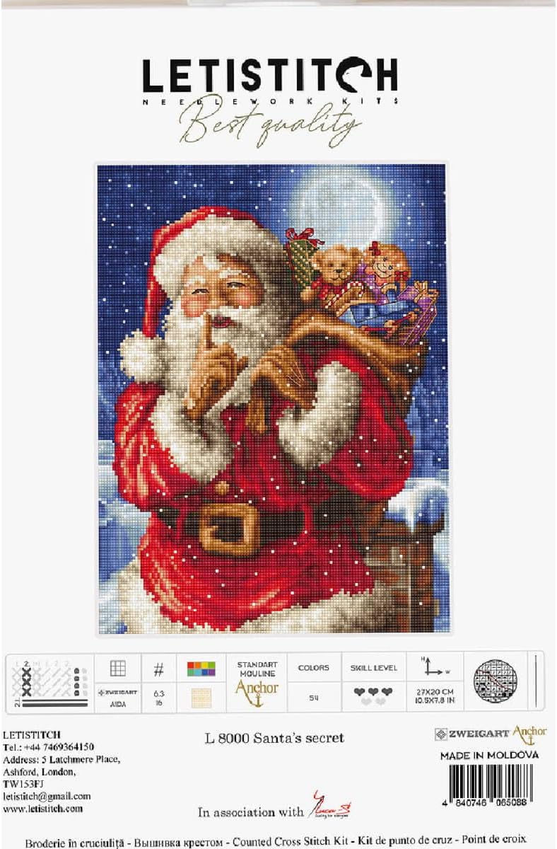 Kit includes: Zw.Aida 16/squared canvas, Anchor in 54 colors, needle, and instructions. Measures 27*20 cm / 10.63*7.87 in.