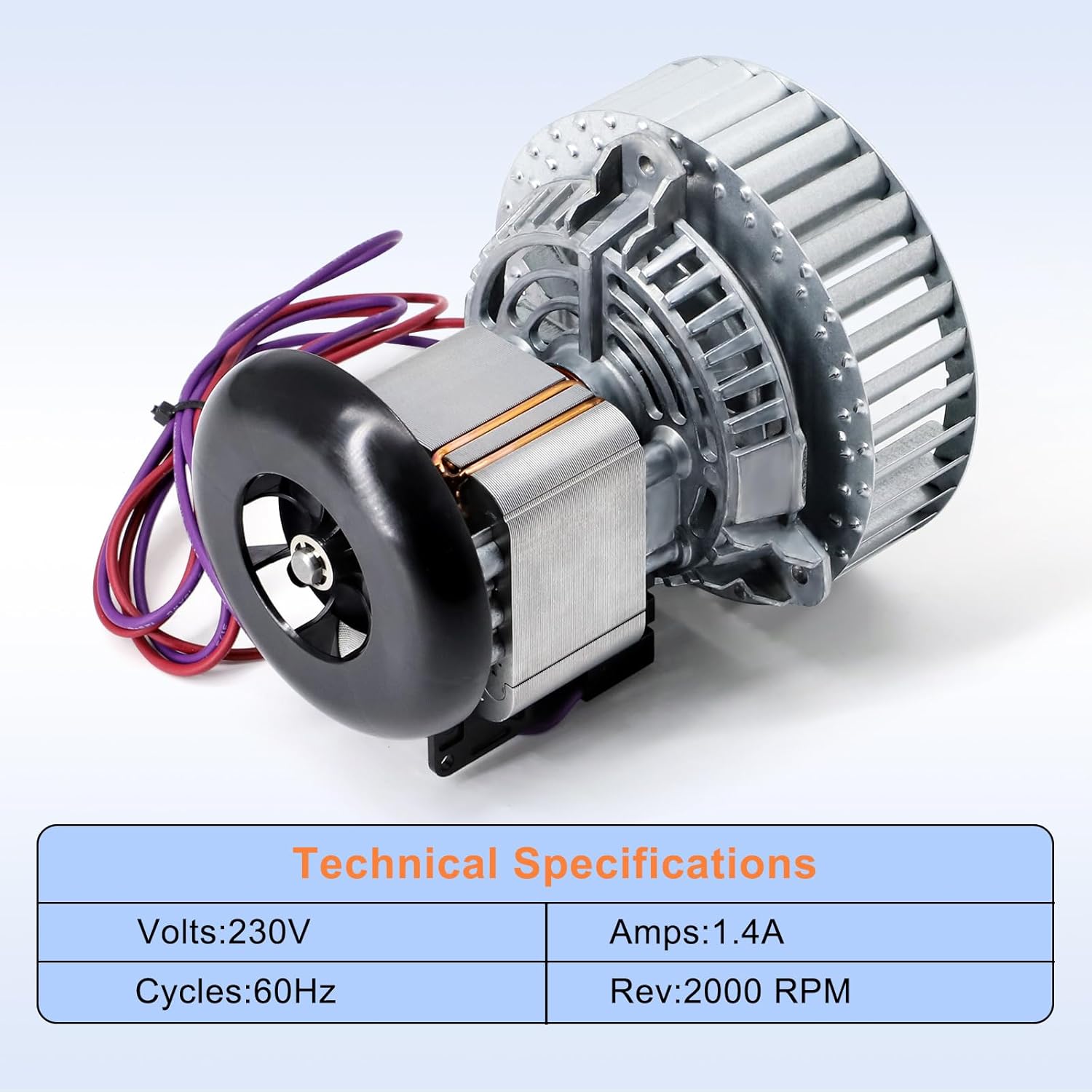 • Technical Specifications--➤★Volts: 230 V, ★Cycles:60 Hz, ★Amps: 1.4 A, ★Rev:2000 RPM.