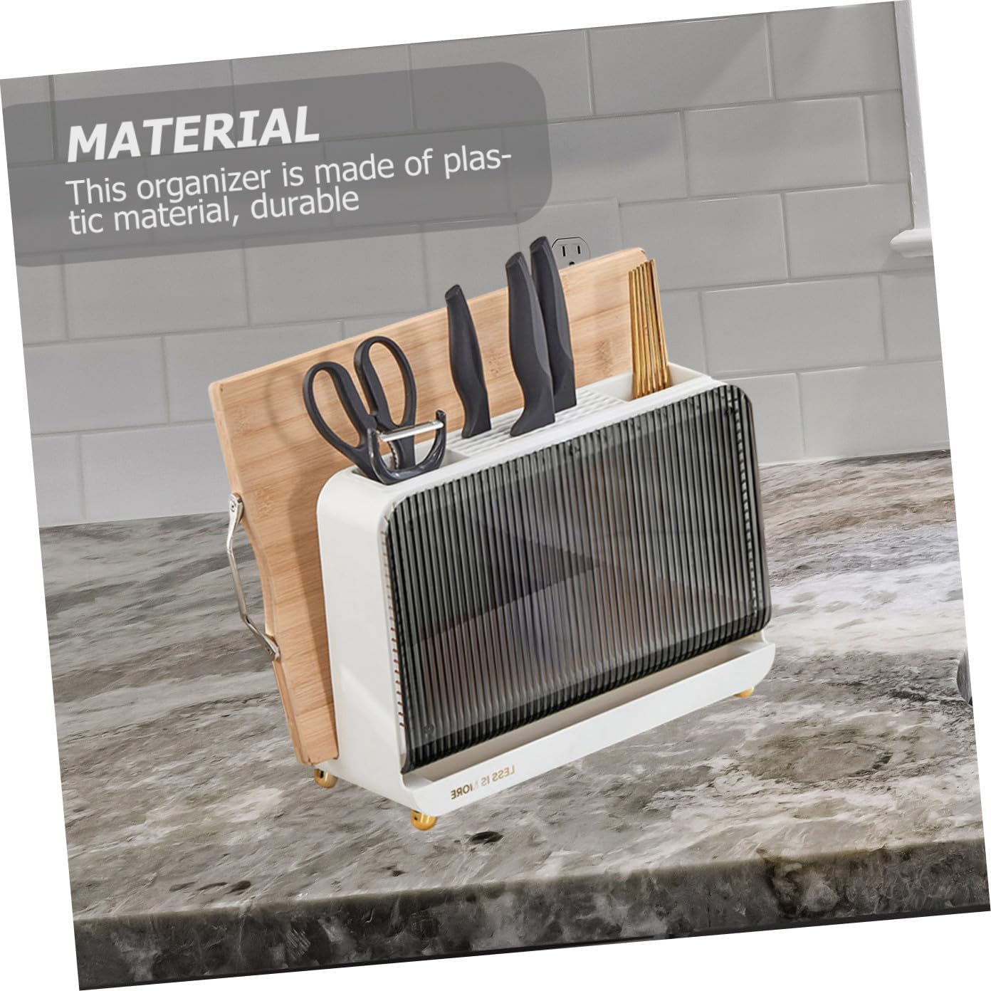 Package List 1 × kitchen cutter organizer Characteristics -Material:Plastic kitchen decor - Size: 33.20X25.00X15.00cm/13.05X9.82X5.89in cutting board holder stand - Color: White kitchen spoon container -You can store chopsticks, forks and spoons. Your kitchen will not be messy again. You can also store your chopping board. kitchen chopstick holder -This Chopstick holder is and convenient, and you will have a experience in using it chopsticks holder. -On this shelf, you can keep cooking tools (such as spoons or spatula) within easy reaching and within reach when needed chopsticks case. -This organizer is made of plastic material, , reusable, easy to clean, can be used with confidence. utensil holder for kitchen -This is a kitchen Countertop Chopstick Holder with a simple appearance design, which is also a home decoration daily use cutlery holder.Goods Descriptionreusable chopstick holder Draining design, put in your kitchen utensils.utensil holders It is made of plastic material, easy to clean, not only a chopstick holder, but also a chopping board organizer.chopstick holder This Kitchen Countertop Holder adopts modern style, and beautiful.convenient chopstick holder The product is suitable for people to use all the time in the kitchen