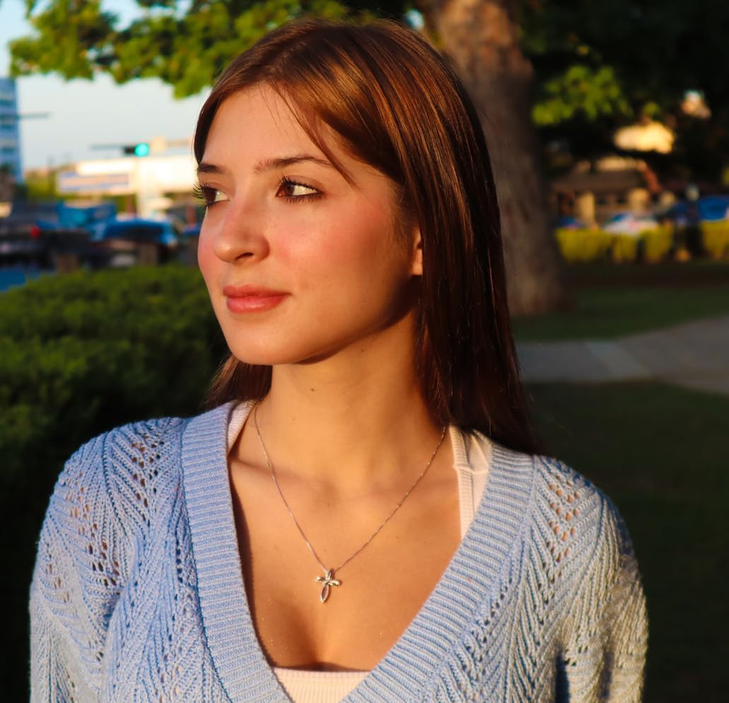 Beautifully designed Diamond Cross Necklace for women features a ribbon like design with 30 round diamonds for a diamond total weight of 1/10 Carat. The natural diamonds are I-J Color, I2-I3 Clarity. The setting is Rhodium Plated Sterling Silver or 14kt Yellow Gold Plated Silver and an 18 Inch Box Style Chain with Lobster Clasp is included. We recommend cleaning with mild soapy water, rinsing and buffing gently with a soft cloth or the jewelry polishing cloth that is included. Do not use silver cleaners or other harsh chemicals as they can damage the finish.