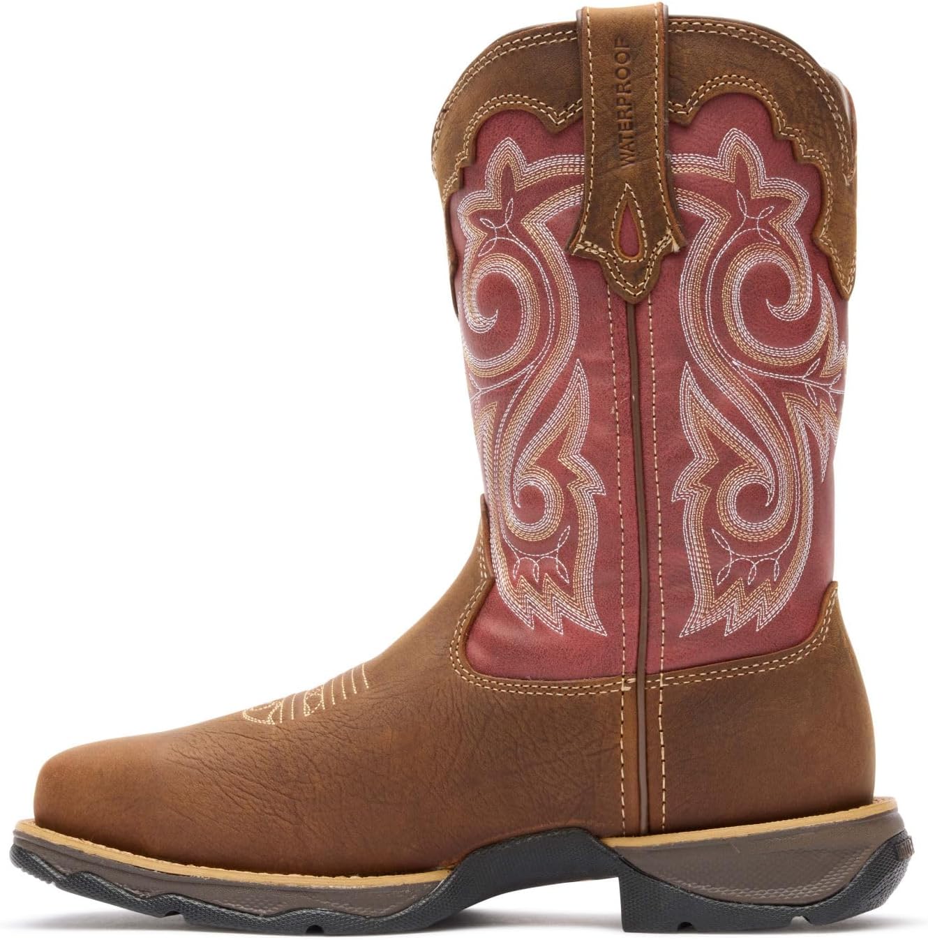 From the exterior, this 10" Lady Rebel boot resembles a traditional-looking Western. It has dark brown full-grain leather on its upper, a dipped topline, pull tabs, fancy stitching on the shaft and a square toe. Yet, what distinguishes this Western from the rest is its steel protective toe; it has met the ASTM F2413 I/75 C/75 Protective Toe Classification and can withstand up to 75 lbs. of impact and compression, as well as meeting the Electrical Hazard Standard. Whether you wear them to your job or want to keep your toes protected around the barnyard, your feet will be safe in these boots. Within the interior, your legs are surrounded by a soft mesh lining. This lightweight material will protect your legs from getting irritated and will keep the interior nice and airy. There is a cushioned footbed to ease your steps and make walking in these Western boots a comfortable experience. By adding in a tempered steel shank, these brown leather boots offer both stability and support. The outsole is extremely lightweight, resistant to abrasions and offers great flexibility. The 1 ¼" rocker heel is low; you will remain comfortable even if you are working all-day long in these boots. A stylish-looking leather boot that offers comfort and unbeatable safety features, this Lady Rebel by Durango® Women's Steel-Toe Western is a great find.