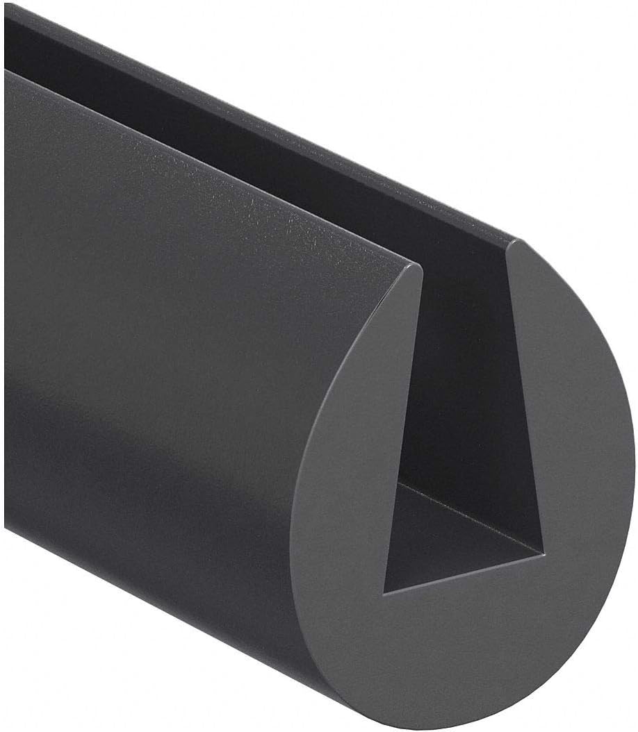Rubber Edging, Application Neoprene, Color Black, Inside Height 5/32 in, Inside Width 1/32 in, Material Neoprene, Maximum Operating Temperature 150 Degrees F, Minimum Operating Temperature -20 Degrees F, Mount Type Non-Adhesive, Overall Height 1/4 in, Overall Length 100 ft, Overall Width 11/64 in, Profile Shape G