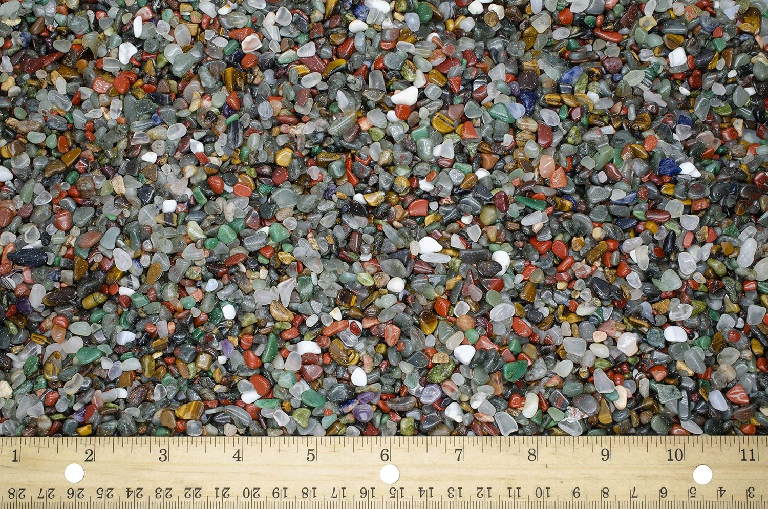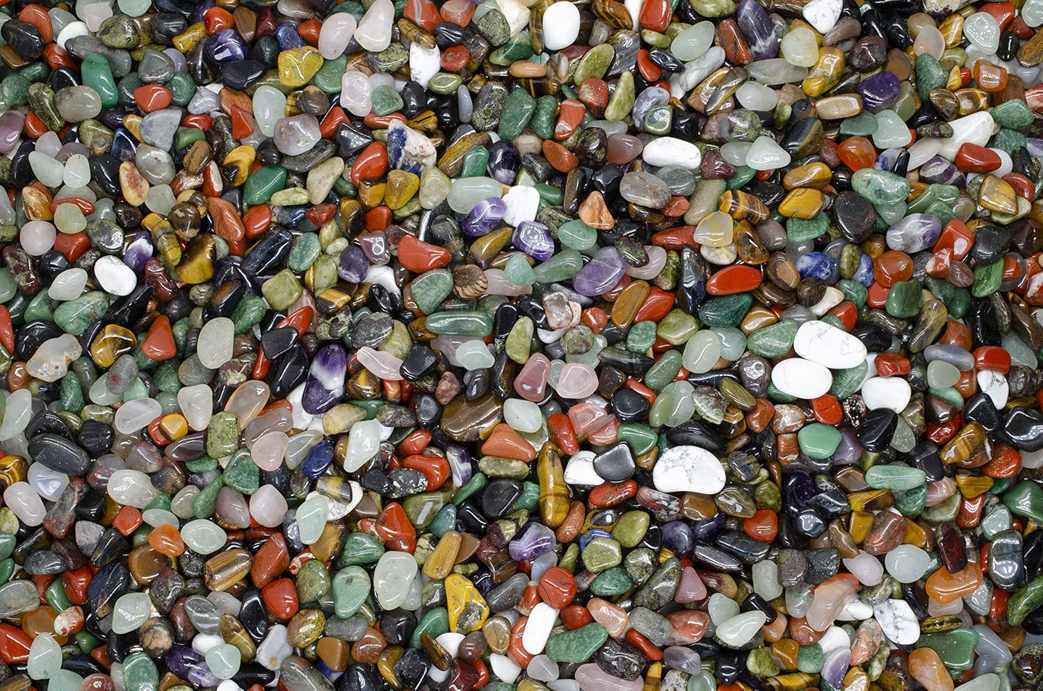 Fantasia is a USA based mining company located in Massillon Ohio providing good old fashioned American quality control to ensure every stone sent is beautiful. Fantasia starts with premium grade African rough stones which are tumbled using Fantasia's proprietary tumbling techniques. This brings out the naturally beautiful colors, patterns, shine, luster and energy in every stone.Some of the many stones used in this mix include: Amethyst, Apricot Quartz, Banded Jasper, Black and Cream Chert, Bloodstone, Blue Chert, Blue Howlite, Blue Tiger Eye, Brecciated Jasper, Carnelian, Chevron Amethyst, Dark Purple Amethyst, Dragon Stone, Epidote, Fine Line Agate, Flower Jasper, Gold Tiger Eye, Green Chalcedony, Green Chert, Grey Botswana Agate, Guinea Fowl, Nguni Jasper, Picture Stone, Rainbow Jasper, Red and White Jasper, Red Carnelian, Red Jasper, Red Lined Agate, Red Tiger Eye, Rose Quartz, Satin Leaf Jasper, Silver Leaf Jasper, Snowflake Epidote, Sodalite, Speartite, Unakite, Unpolished Turquenite, Voegesite, White Howlite, Wine Red Quartz and MORE!Your order will contain multiple pieces with varying stone types, sizes, shapes and patterns as shown in the images which is equal to or greater than the total weight purchased. In most cases the size of each stone is between 0.5" to 0.75" each, but it is possible to get some stones smaller or larger than these averages. While most stones in this mix are undyed it is possible to receive dyed blue howlite in this mix.VERY IMPORTANT: With all tumbled stones there are some material types which will have imperfections even after being meticulously tumbled due to their natural characteristics. While rare, due to the fragile nature of tumbled stones it is also possible minor chipping may be found on some of the stones received. The number of acceptable imperfections is relative to the material type and the grade being purchased and some minor imperfections should be expected as shown in our images.