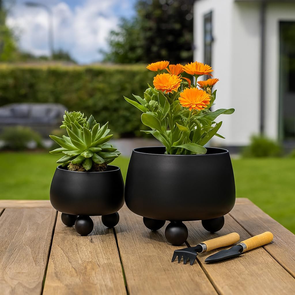 A beautiful home is often made of the little things that feel effortless but leave a lasting impression. These planters embody that idea through their sculptural rounded shapes, balanced proportions, and elevated design. Raised on smooth, ball-shaped feet, they bring a unique profile to any room and create the kind of detail that feels both modern and thoughtfully considered. Whether you're styling a shelf, brightening up an entryway, or placing one on a console or side table, this set delivers quiet charm with a strong design presence. The soft finish adds a layer of refinement, allowing your plants to remain the focal point while still offering visual interest that feels curated and intentional. Each piece is crafted to be versatile and functional, with proportions that work beautifully with different plant types, including orchid pots, terracotta pots, and compact nursery pots. They're also a perfect choice for succulent planters that deserve a more design-forward home and can transform even the smallest greenery into a standout element. The silhouette offers structure without feeling heavy and makes a clean base for trailing plants, upright arrangements, or seasonal styling that evolves throughout the year. These planters work equally well in minimalist spaces or more curated interiors, pairing easily with both neutral palettes and bolder tones while providing the flexibility to adapt to shifting styles. They also integrate effortlessly with a wide range of plant accessories, whether you're styling solo or grouping with other pieces for a layered look. The thoughtful design invites a sense of balance, movement, and beauty into your everyday routine, transforming greenery into a focal point that feels polished, elevated, and quietly expressive without ever competing for attention.