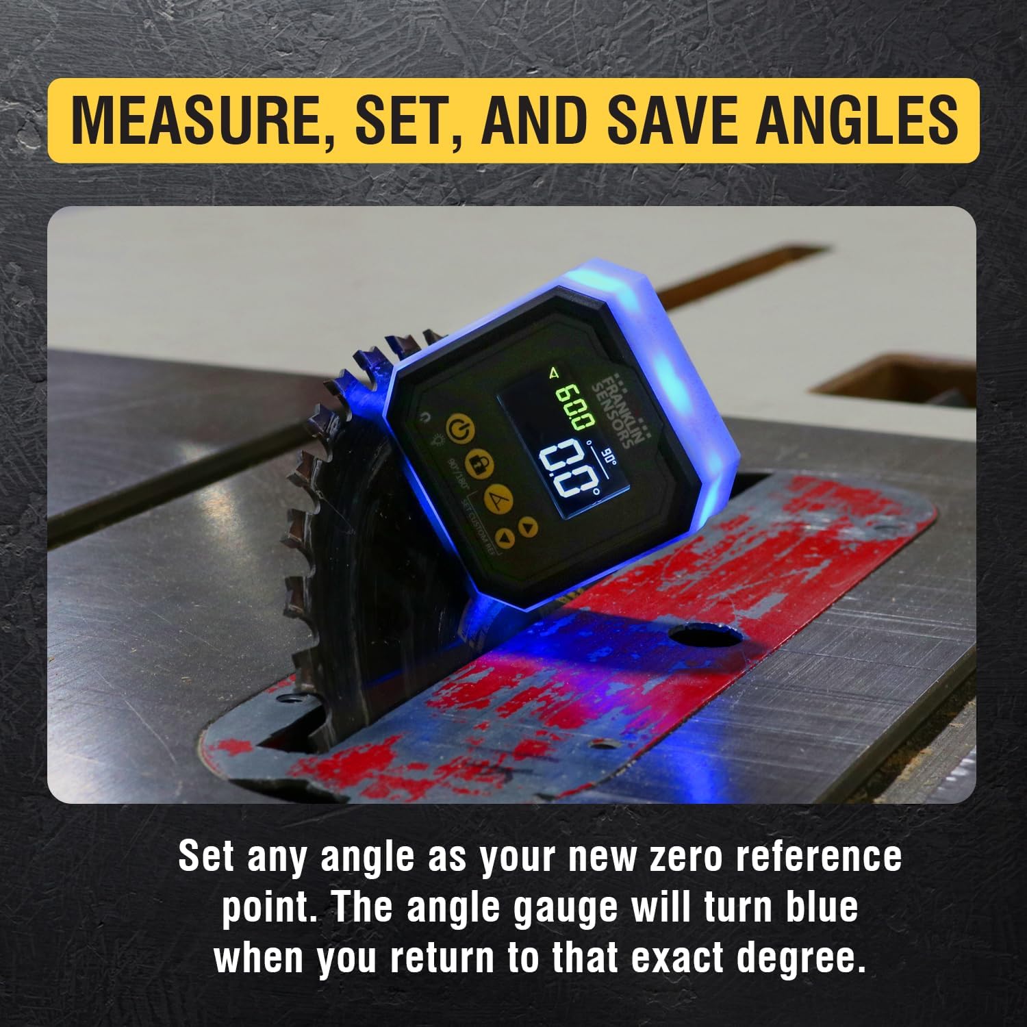 Accuracy is easy with The Franklin Sensors Light Cube. This innovative digital angle finder glows green when perfectly level at 0, 90, or 180 degrees, and turns blue when you return to custom angles you've set as reference points, ensuring repeatable accuracy across multiple cuts and installations. The backlit display rotates automatically for easy viewing from any position and measures in precise 0.1-degree increments between 0-90° or 0-180° ranges. Embedded rare earth magnets create a powerful grip on miter saw blades, pipes, and metallic surfaces, while the V-groove design keeps it stable on round materials like conduit and tubing for true hands-free operation. Whether you're a woodworker setting table saw angles, an electrician bending conduit, or a contractor making precision miter cuts, the Light Cube delivers professional accuracy with visual confirmation that eliminates guesswork and ensures flawless results every time.