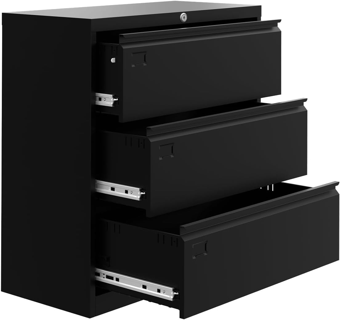 GAOMON 3-Drawer File Cabinet with Lock, Metal Lateral Filing Cabinets for Letter/Legal Size Documents, Heavy Duty File Storage for Home Office, Black (3 Drawers)