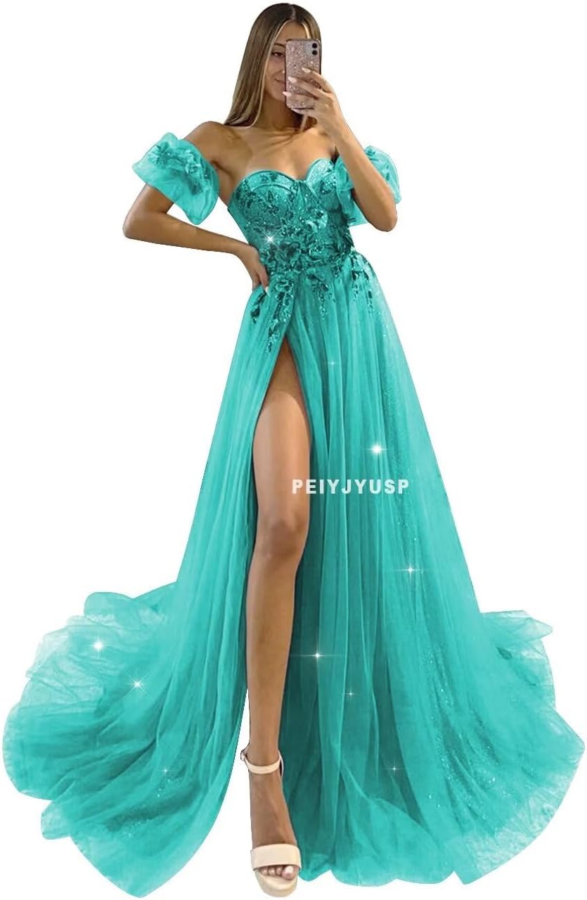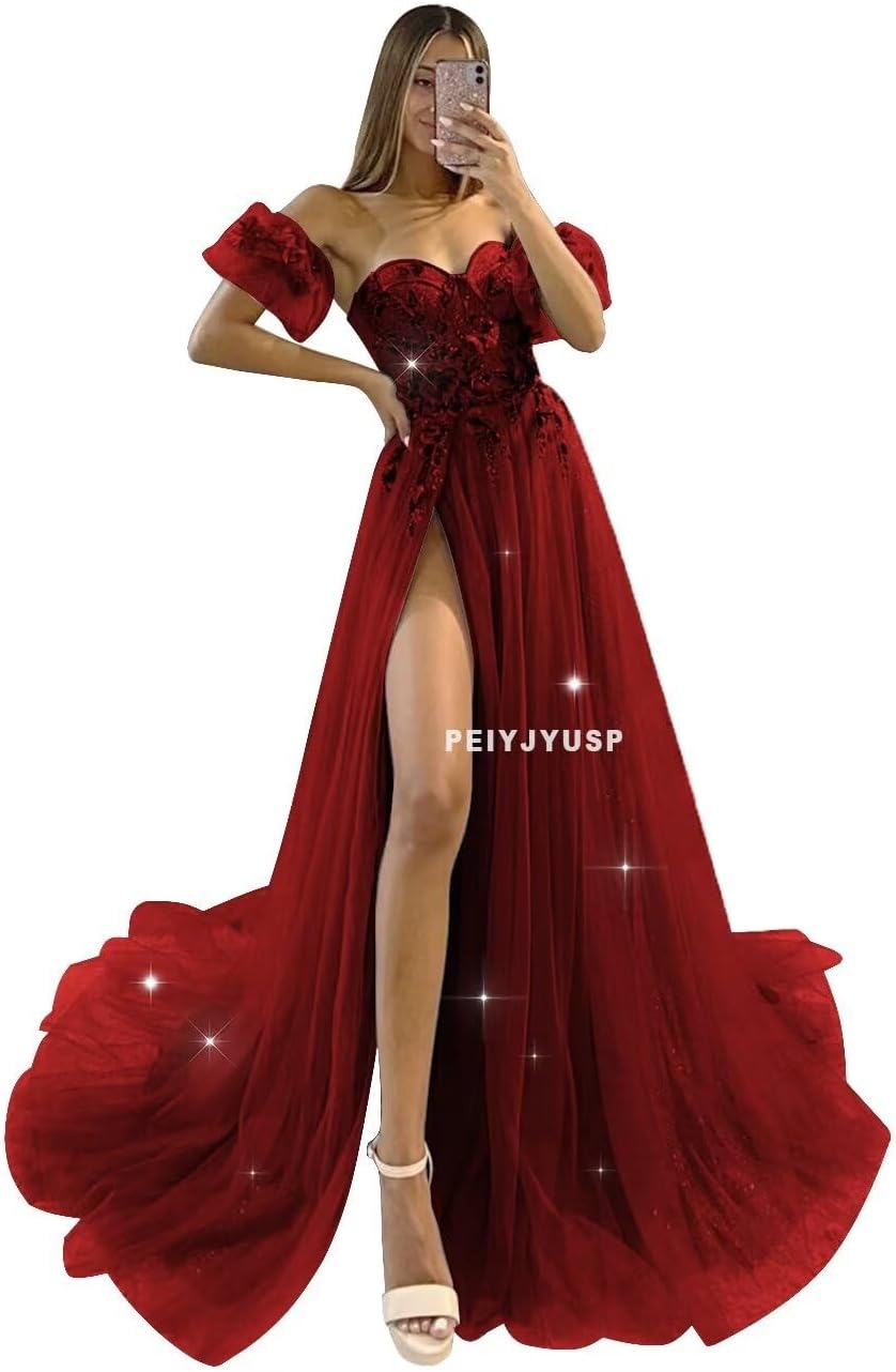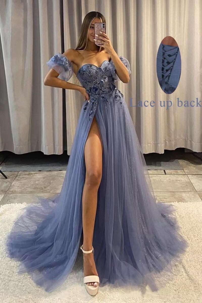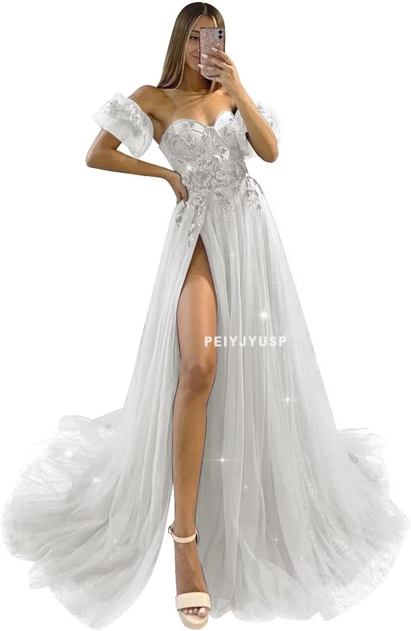 | Sleeve Type | Detachable Sleeve Tulle Prom Dresses for Women Puffy Sweetheart Long Slit Evening Party Gown |