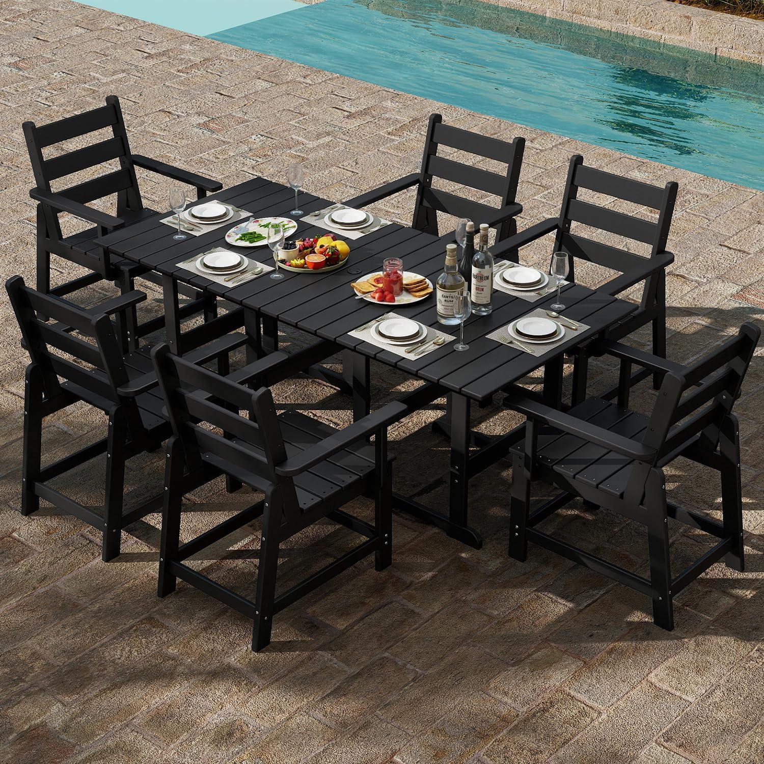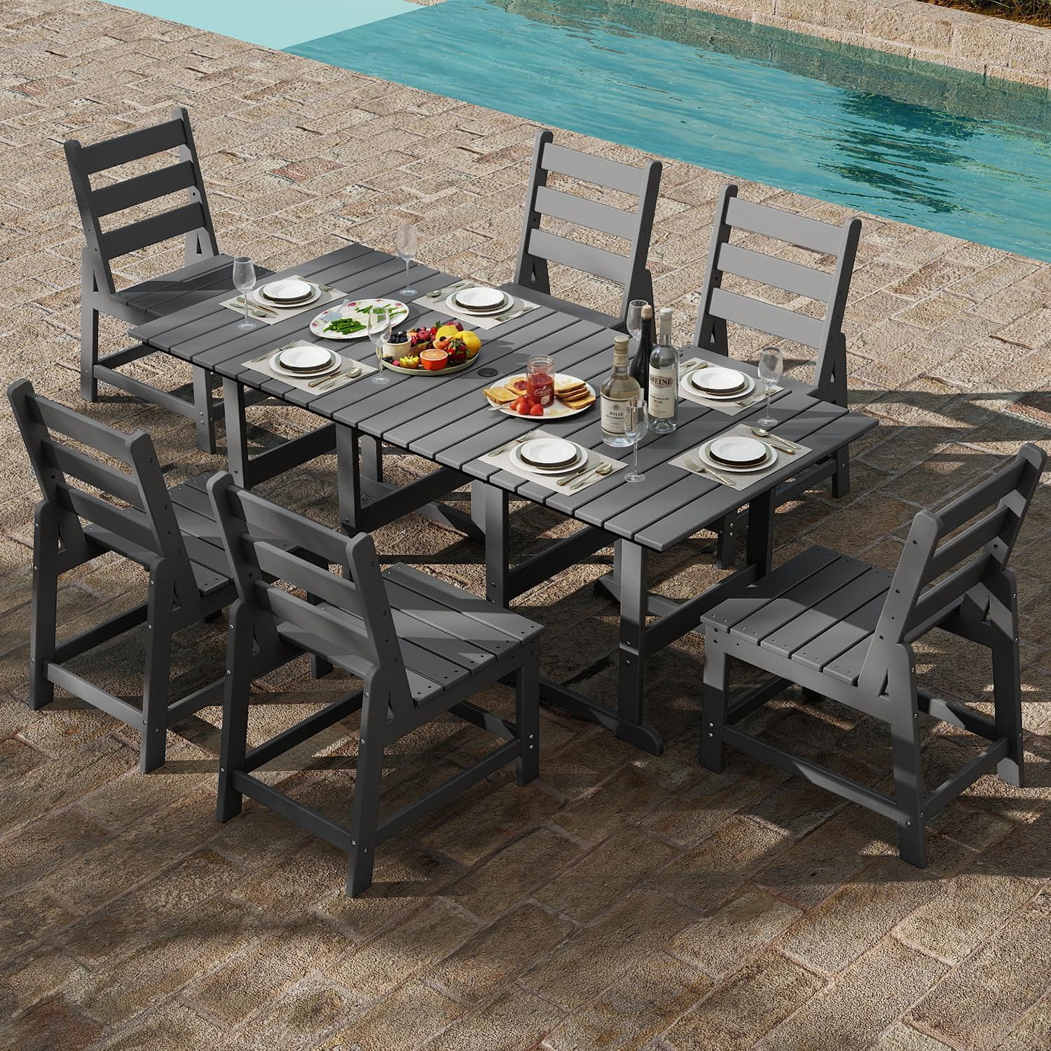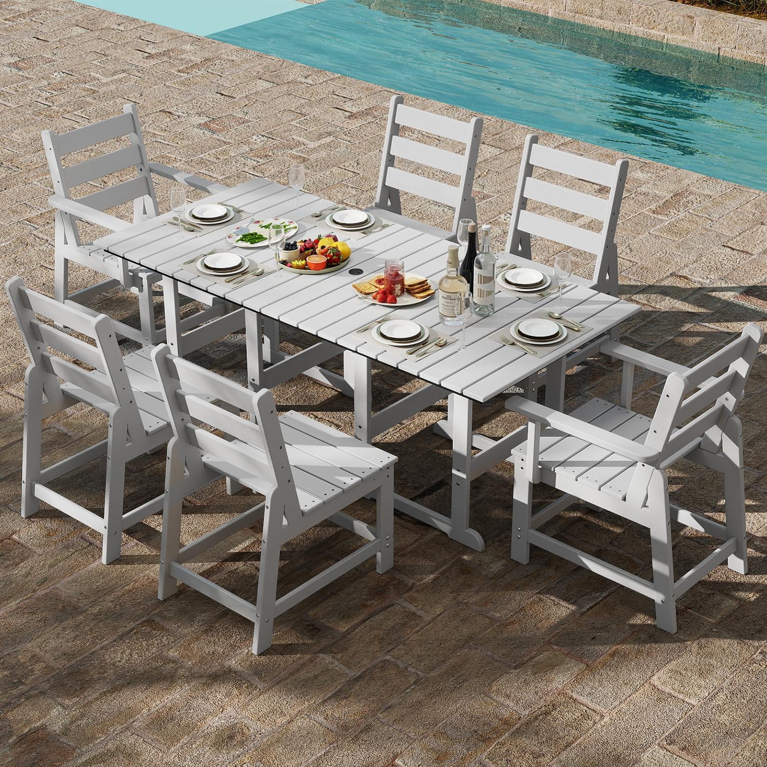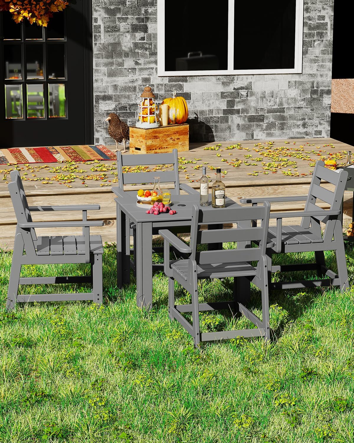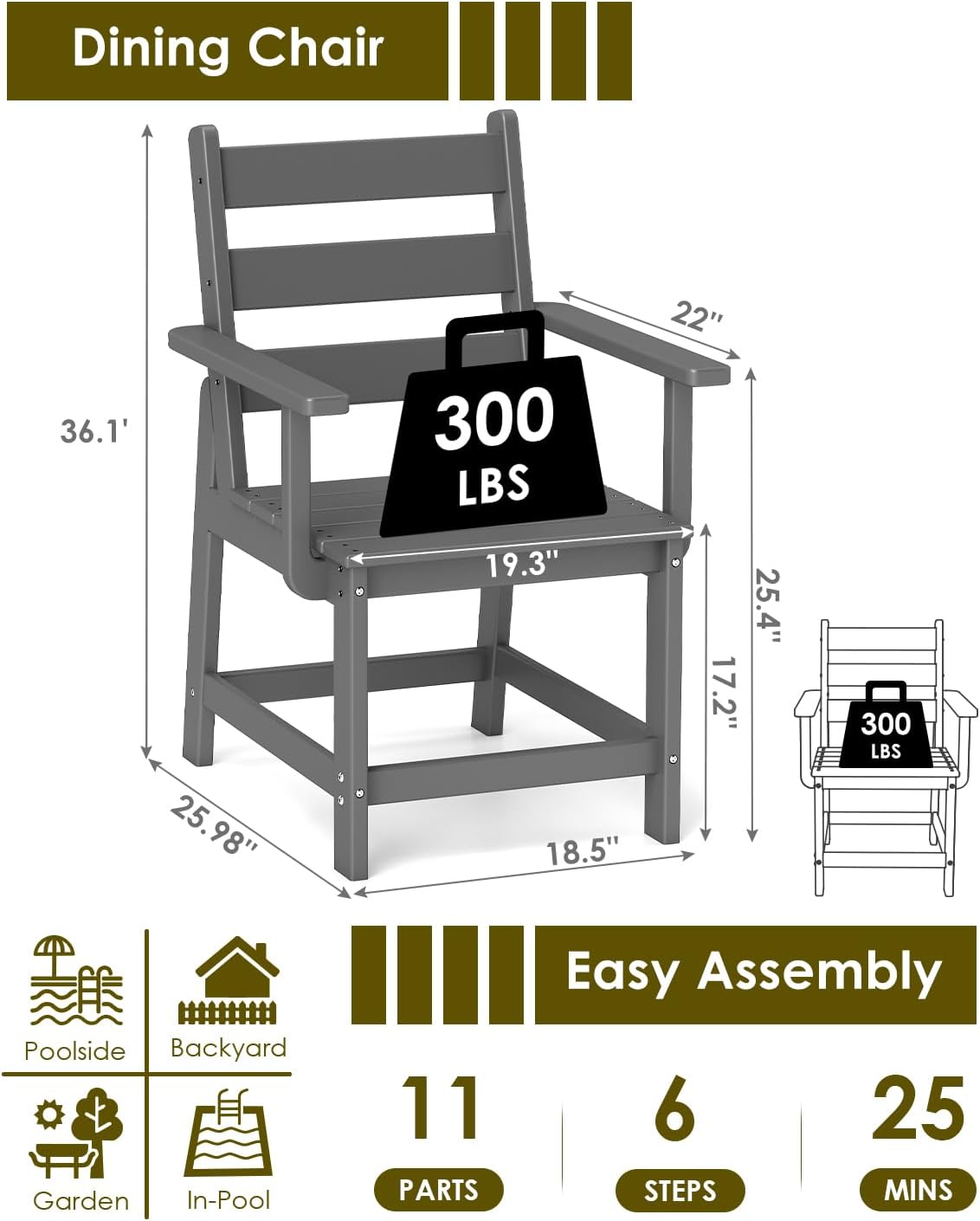 GREENVINES Patio-Chair | Outdoor Dining Chairs | HDPE Plastic | Detachable Armrests | Weatherproof | for Backyard Deck Poolside Garden | Grey