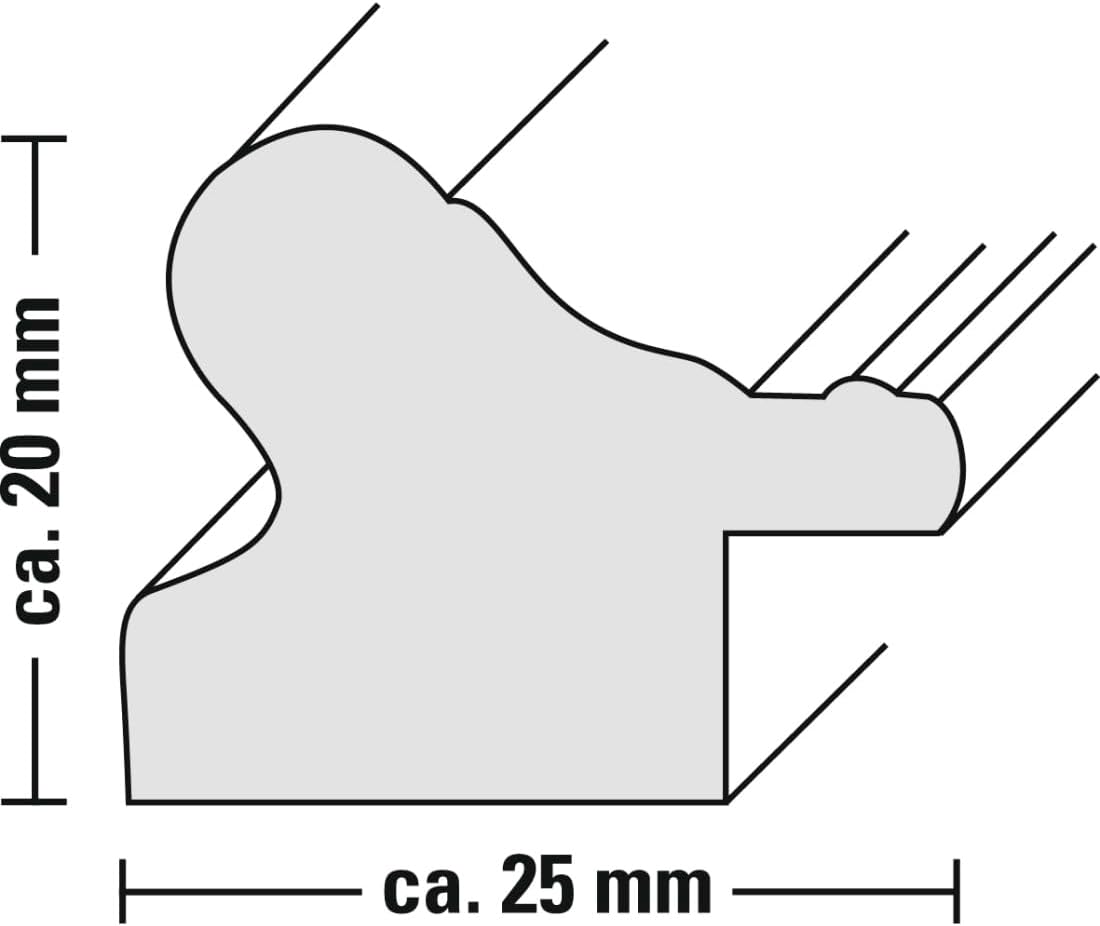 Elegant plastic frame in baroque design, - Contoured moulding with contrasting white inner edge and discreet decorations,- The image is staged like an exceptional painting,- Quality glass polished and then cleaned,- Precise mitre assembly,- With heavy load hook for hanging in vertical or horizontal format