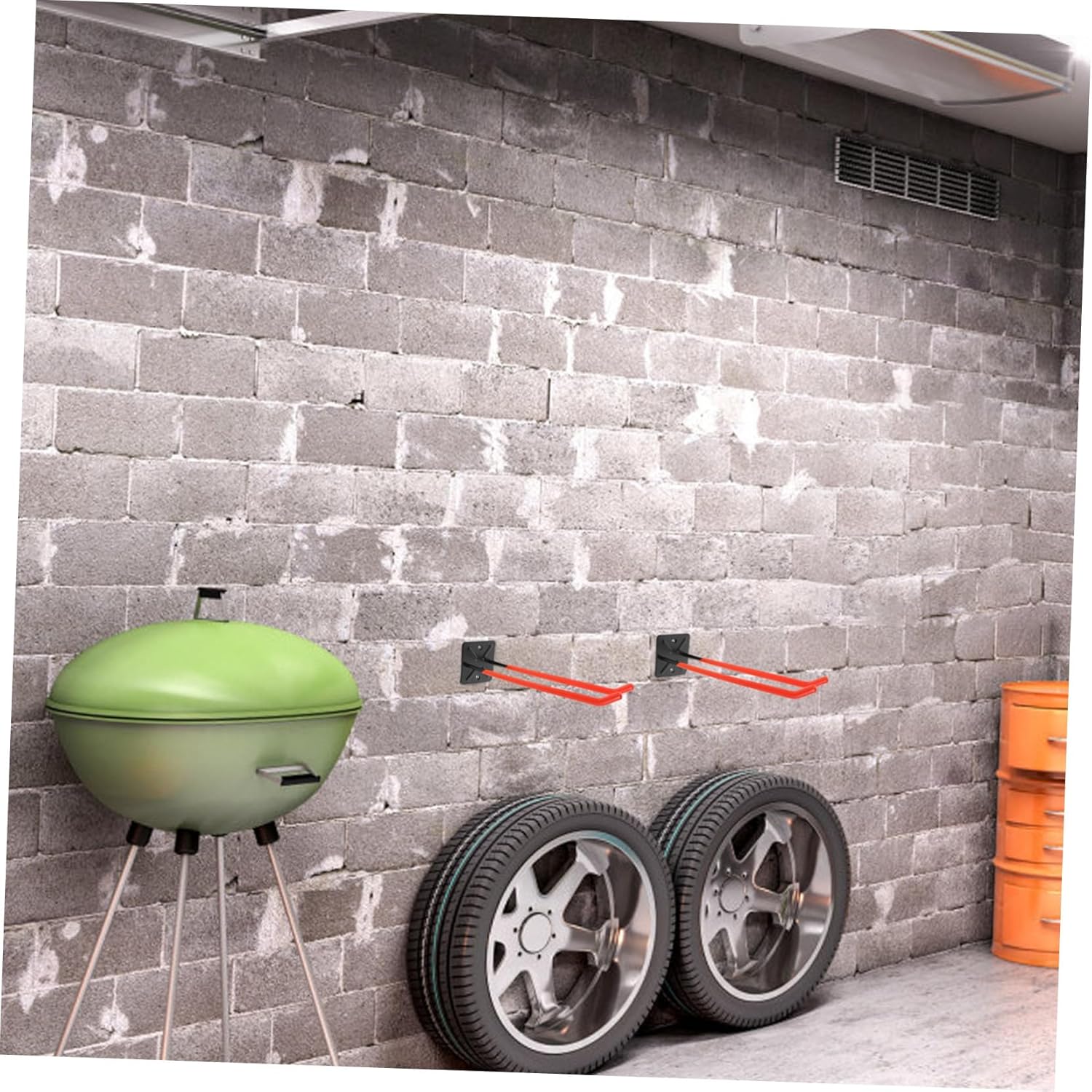 Package List 1 x garage hooks 2 x screws 2 x Expansion Tube Features -Allpurpose design: suitable for garages and warehouses, these hooks offer a versatile storage solution for tires and other heavyduty items tire plug glue - Color: Orange wheel for cars lug nuts -Product Info:Tire hook -Reliable durability: constructed from strong materials, these hooks are built to handle the weight of heavy tires with ease garage hooks -Stylish appearance: with a sleek and elegant design, these hooks fit well with various decor styles, adding a touch of sophistication to your storage solutions tire changers -Material:Iron wheel key -Effortless installation: easily mount these hooks on the wall to maximize space and maintain an organized storage area car seat back storage hook - Size: 31.00X10.30X10.00cm/12.18X4.05X3.93in storage hooks wall mount -Increased load capacity: the design boosts the hooks' loadbearing ability, ensuring your tires are securely stored universal wheel keyGoods Informationtire leak sealant To install, simply attach the hooks to your garage wall using the included screws and anchors.yoga ball racks Not only can they be used for hanging tires, but they are also great for organizing other tools and equipment.tire tread gauge Once in place, you can hang your tires and other items.yoga ball storage The tool storage hooks are a versatile addition to any garage