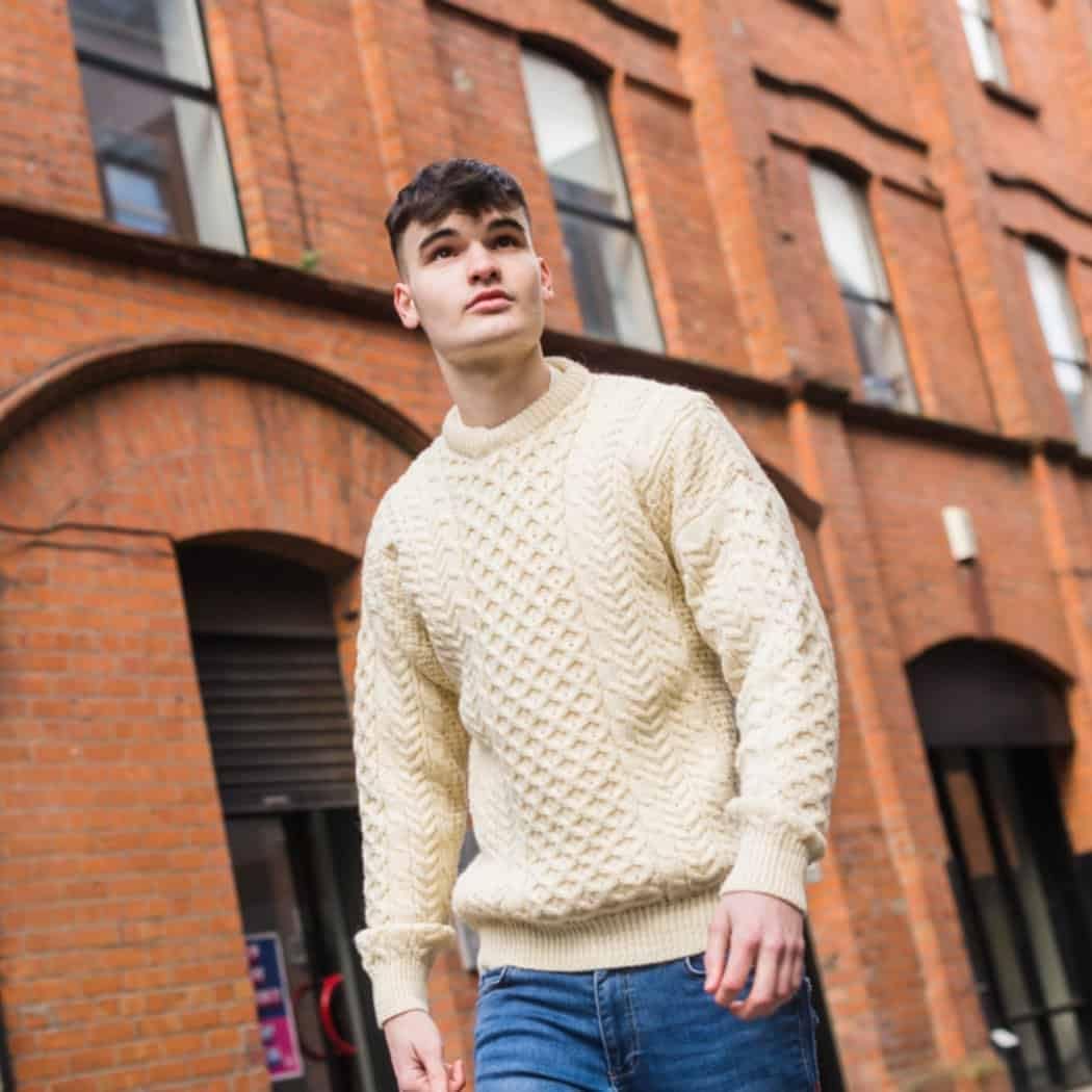 Embrace the timeless tradition of Irish craftsmanship with this Classic Irish Wool Sweater. Crafted from 100% wool, this crew neck sweater features intricate stitching designs that have been passed down for generations, including the beautiful Aran Honeycomb, Cable, and Irish Moss stitches. Warm and comfortable, this sweater is a perfect blend of traditional and modern styles that will never go out of fashion. Whether you're treating yourself or giving it as an authentic Irish gift, this sweater is a must-have for any wardrobe.