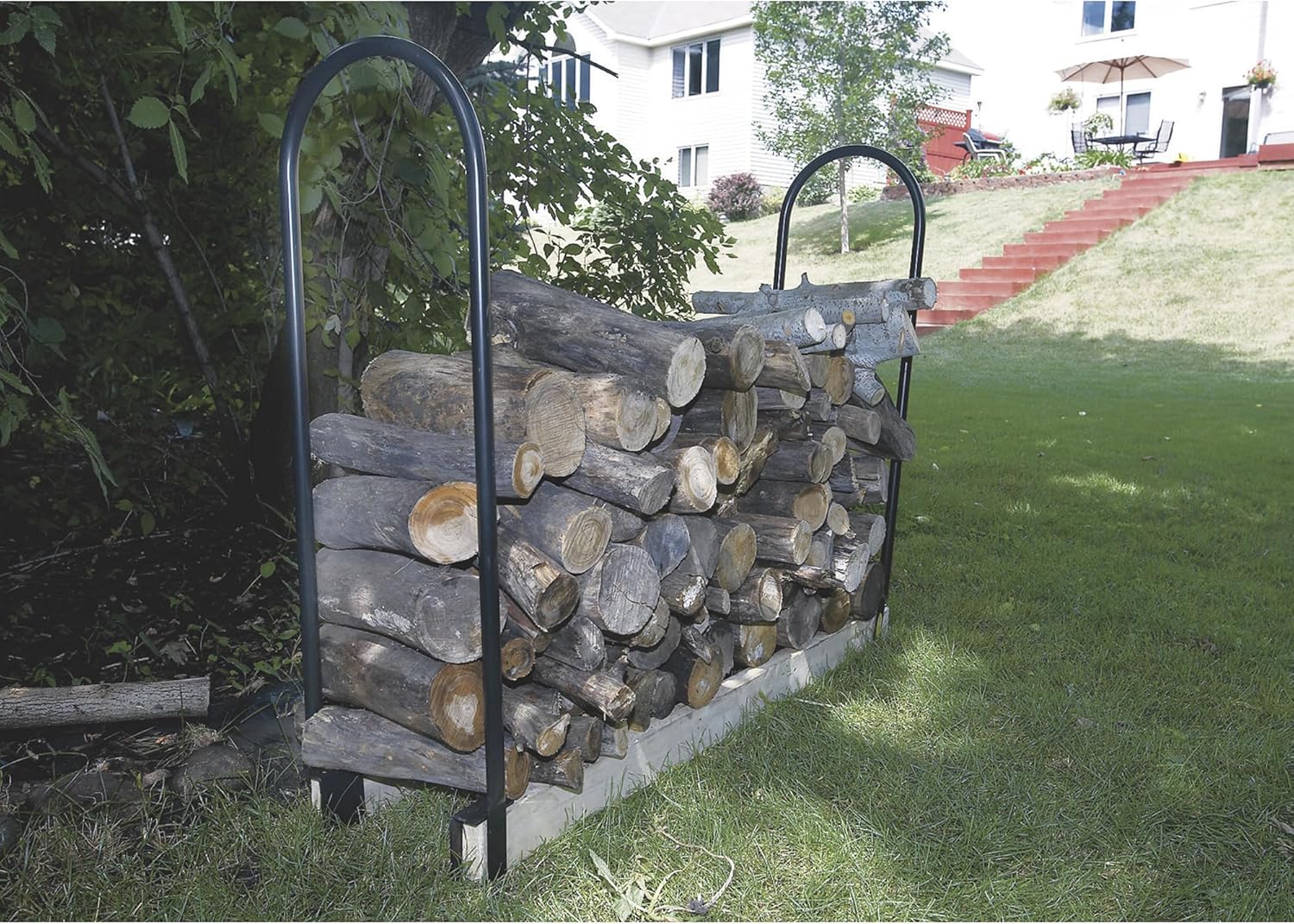 This Ironton Steel Firewood Rack helps organize your woodpile by holding firewood in a neat stack. Make the crib any length you like by adding two 2 x 4s (not included). Open-air design gets excellent ventilation, perfect for seasoning firewood. Made of 1in. tubular steel with baked-on moisture-resistant finish.