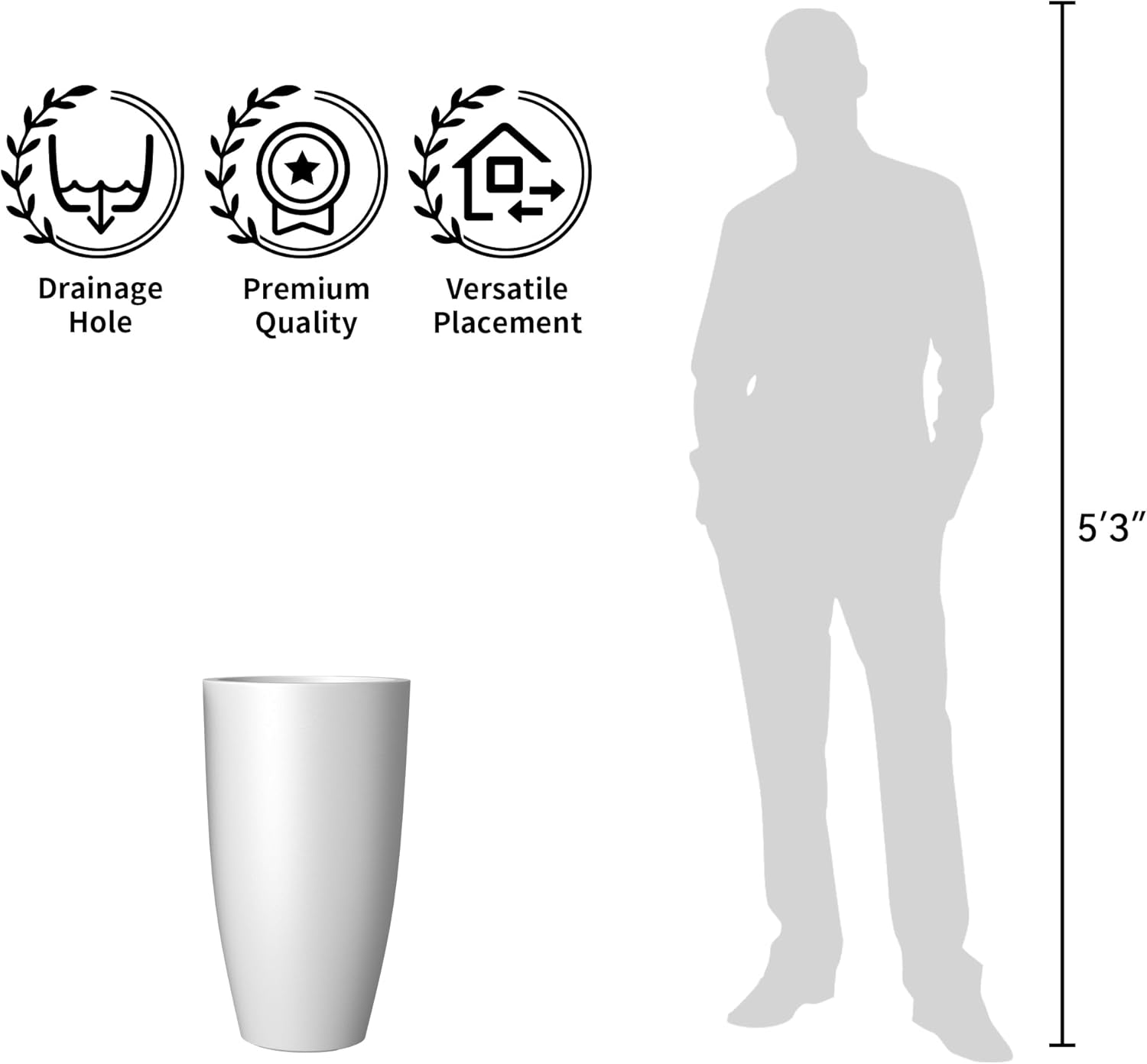 Kante 23.6 Inch Tall Round Concrete Planter Set of 2, Large Plant Pots with Drainage Hole for Indoor Outdoor Plants, Ideal for Porch, Patio, Garden, White Elegant Concrete Planter – Discover a modern design with smooth, flowing curves and a naturally weathered finish that exudes timeless appeal. Crafted with care, this statement piece seamlessly blends contemporary style with organic texture, featuring subtle pores that enhance its authenticity. It adds a refined touch of character to different surroundings.Handmade Plant Pot – Made from a premium concrete mixture, this pot maximizes durability, strength, and resistance to weather and damage. Its enduring color, combined with UV resistance, ensures that it maintains its vibrant appearance under the outdoor conditions.Large & Versatile – Whether showcasing a plant indoors or positioned on the front steps, porch, or patio, this generously sized planter enhances modern, minimalist, and traditional styles with its unique design. Its versatility makes it well-suited for a variety of settings.Drainage System – Our planter pot features drainage holes for efficient water management, each equipped with a rubber plug for both indoor and outdoor use. Enjoy effortless gardening with minimal upkeep, promoting a healthy environment for your plants.