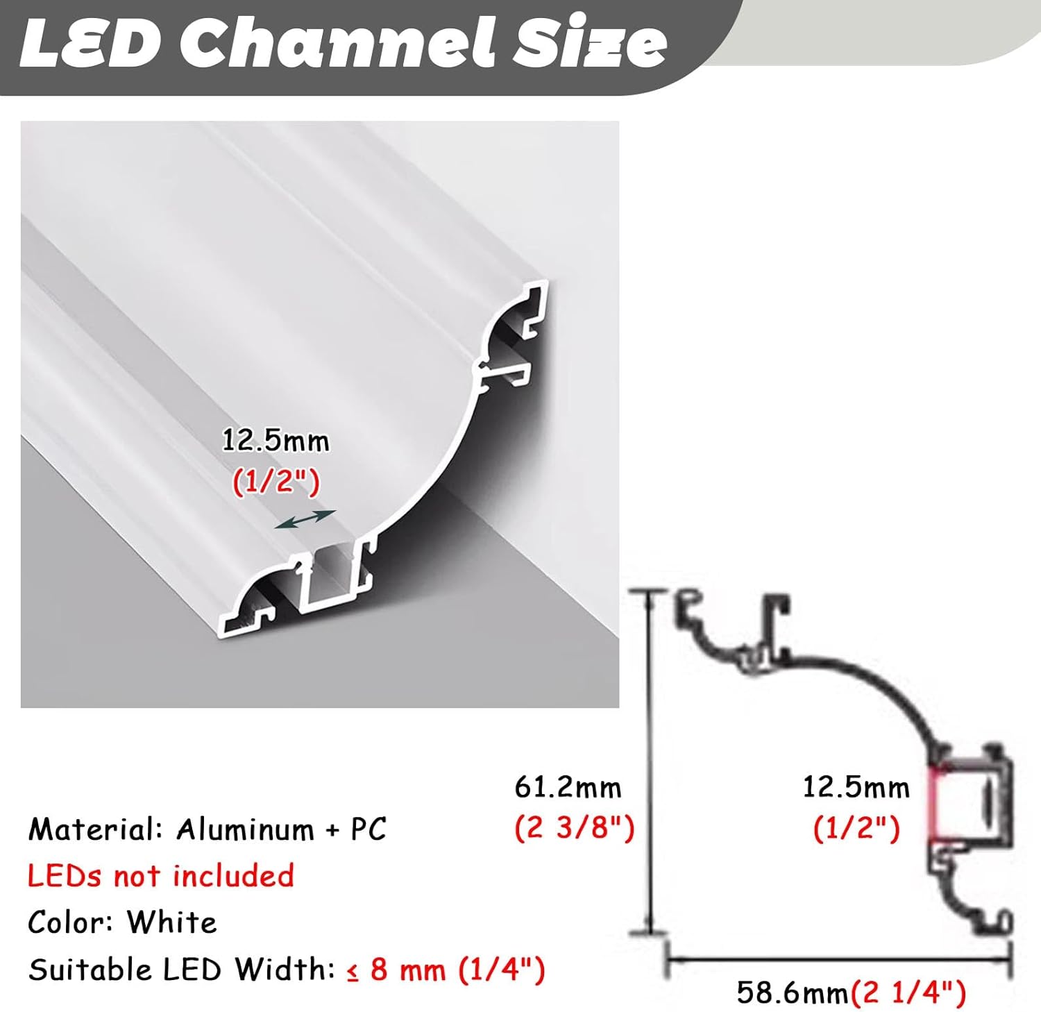 Transform your living space with our premium LED crown moulding, designed to create a soft, inviting glow that enhances any room. This versatile lighting solution is perfect for home decor enthusiasts looking to elevate their ceilings and achieve a modern aesthetic. **Product Specifications:** - **Material:** Durable Aluminum - **Color:** Elegant White - **Length Options:** Available in 1 m to 30 m (3.3 ft to 98.4 ft) - **Compatible LED Width:** Up to 8 mm (1/4") **Features:** - **LEDs Not Included:** Customize your lighting experience by selecting the perfect LEDs for your needs. - **Efficient Heat Dissipation:** Ensures longevity and optimal performance of your lighting setup. - **Seamless Home Decor:** Ideal for enhancing ceilings in living rooms, bedrooms, or office spaces. - **Cost-Effective Decoration:** Achieve a high-end look without breaking the bank. - **Surface Mounted Design:** Sleek and easy to install, enhancing your interior design effortlessly. - **Protective Aluminum Channel:** Shields LEDs from dust and damage, maintaining their brilliance. - **Versatile Installation:** Can be cut to fit your space and includes corner connectors for smooth transitions. - **Dynamic Lighting Options:** Perfect for skirting and background lighting, allowing you to set the mood in any area. **Package Includes:** 1 x LED Aluminum Channel (includes screws for installation) **Additional Notes:** - For a polished finish, consider using joint sealant or repair paste (not included) for seamless joints. - Please note that colors may vary slightly due to different digital device displays. - Allow for minor measurement deviations as each piece is crafted with care. **Customer Satisfaction Assurance:** We are committed to providing you with exceptional service. If you have any questions or need assistance, please reach out to us anytime. Elevate your space today with our LED crown moulding and enjoy the ambiance it creates!