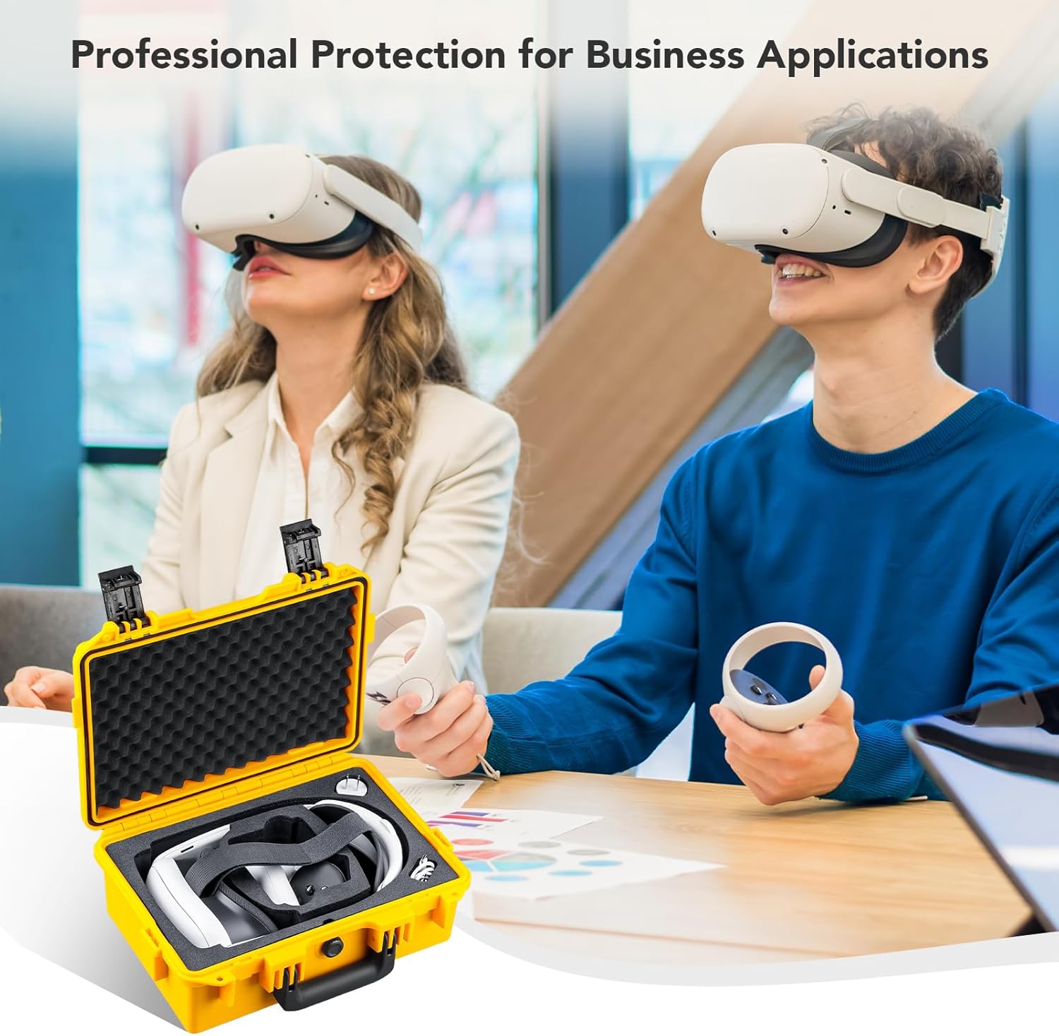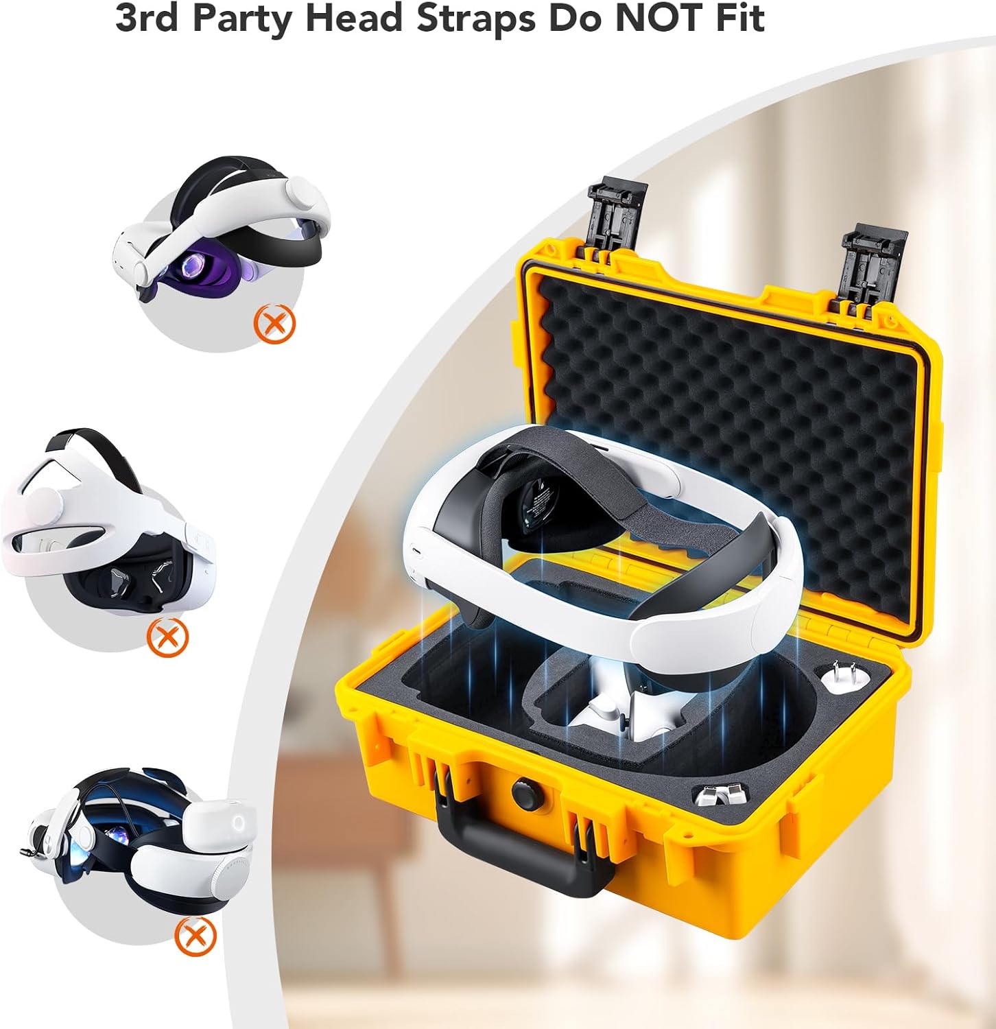 Lykus Titan OQ200 waterproof hard case (Yellow) works with Quest 3S/Quest 3/Quest 2 and fits official elite head strap. It provides better protection than soft cases.