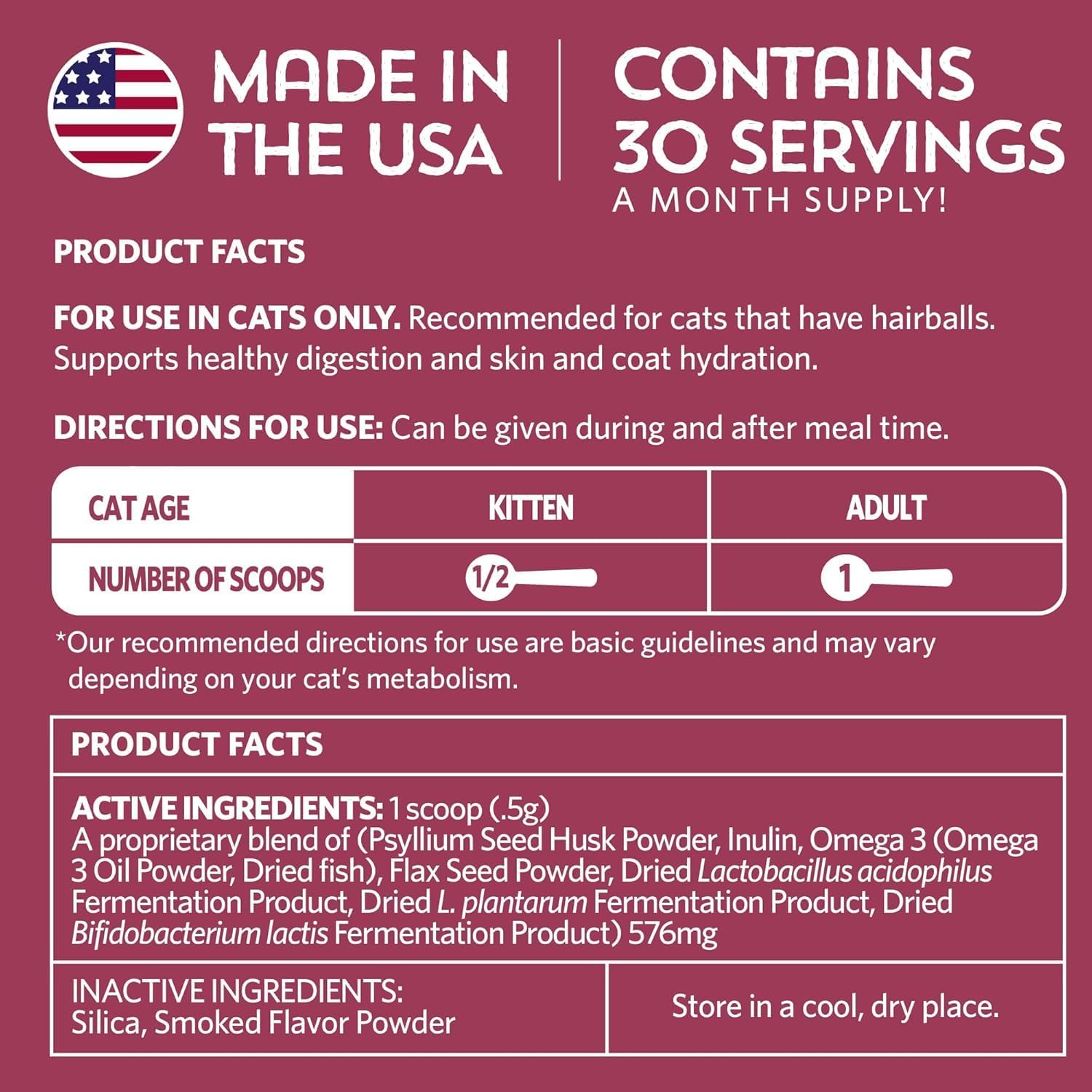 | Flavor | Probiotics + Hairball |
