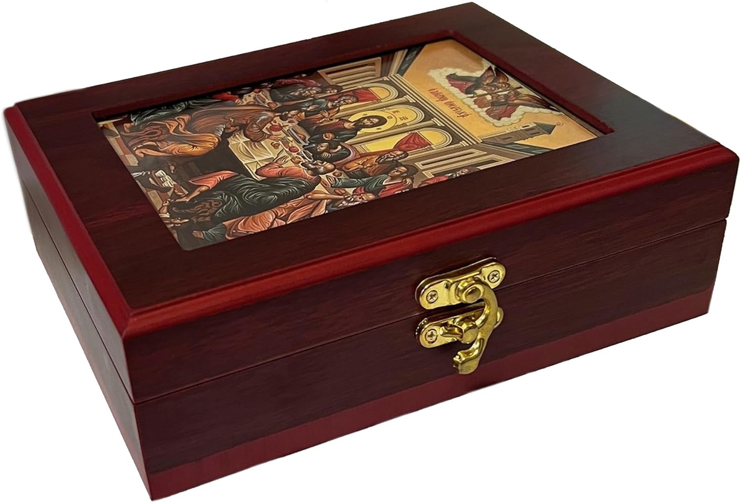 Mystical Supper (Last Supper) Wall Hanging Icon Box or Table Top Box. Orthodox Catholic Byzantine Icon of Last Supper. Last Supper Icon - Easter Lent A very beautiful framed wall hanging icon box - Versatile Use: Ideal for storing rosaries, prayer ropes, beads, jewelry, prayer cards, mini icons or anything small - can be hang on the wall as a framed icon box Religious Gift for easter, pascha, christmas for women, man, priest, bishop, teacher, her, him, wife, teacher, girlfriend, friends, mum, mother in law, sister, daughter on Mother's Day, Birthday, Christmas, Easter, Valentine's Day, Anniversaries, Wedding, Party or Special Occasions