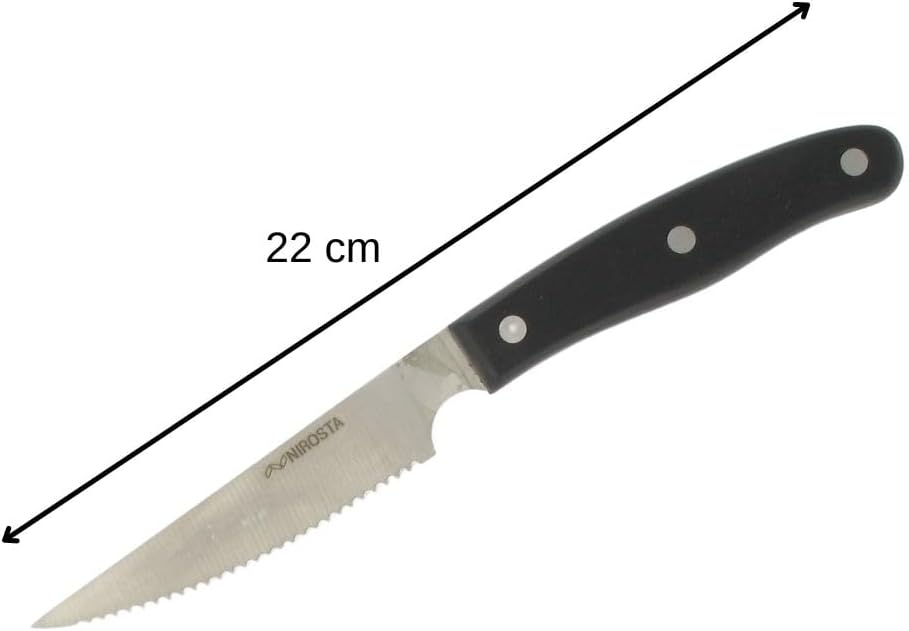 Nirosta Meat knife 22 cm (quantity: 1); admirable table knife for cutting meat, bread, vegetables; the shape of the handle fits perfectly in the hand, 3 years warranty..Nirosta tradition, quality and precision dimensions: 22 cm with blade of 11.5 cm; material: stainless steel blade and handle in plastic pom; dishwasher safe.For over 100 years Nirosta is considered as the epitome quality workmanship in Germany and stands for consistency, functionality and reliability. Our knives and household items are convincing and of the highest quality; sophistication in production and design, while maintaining tradition. Excellent value for money.