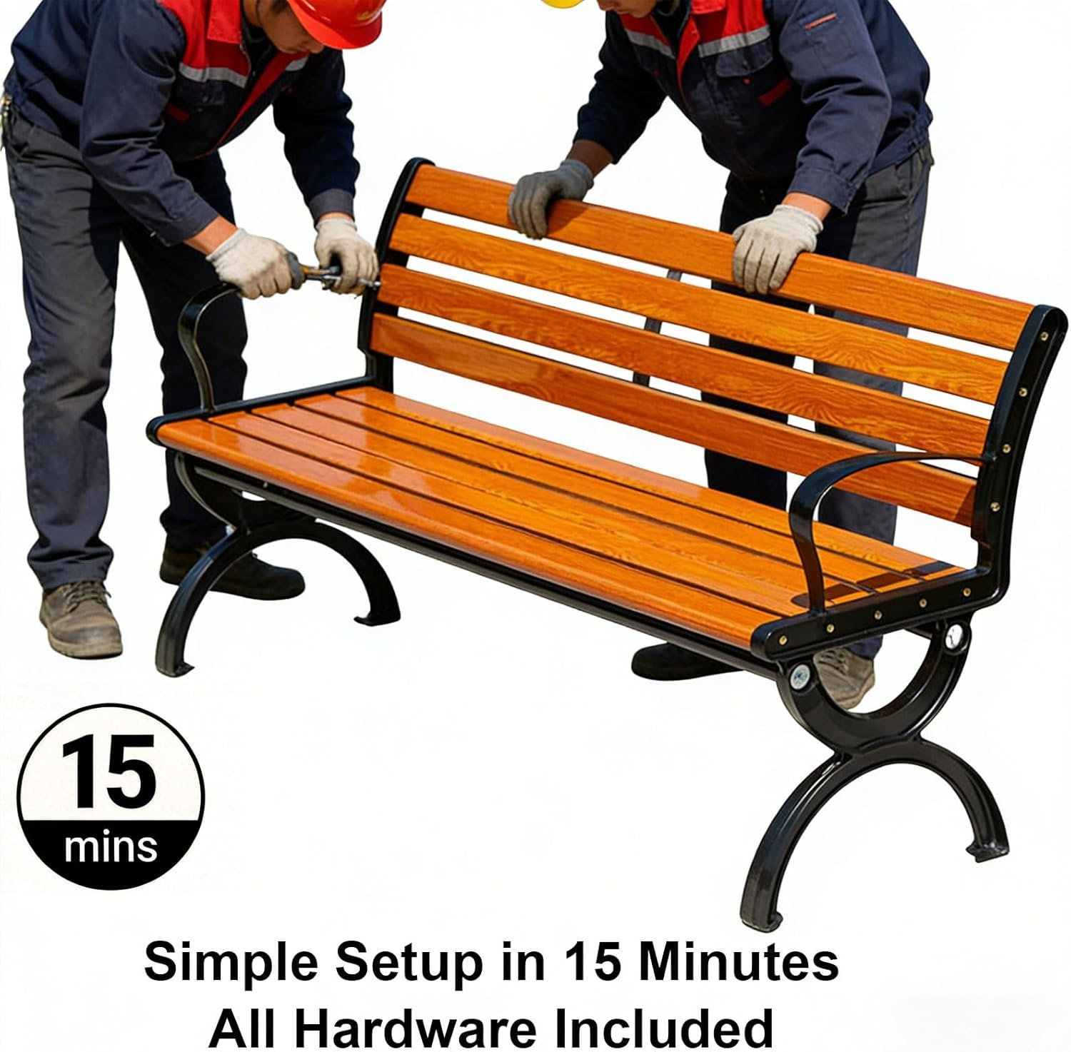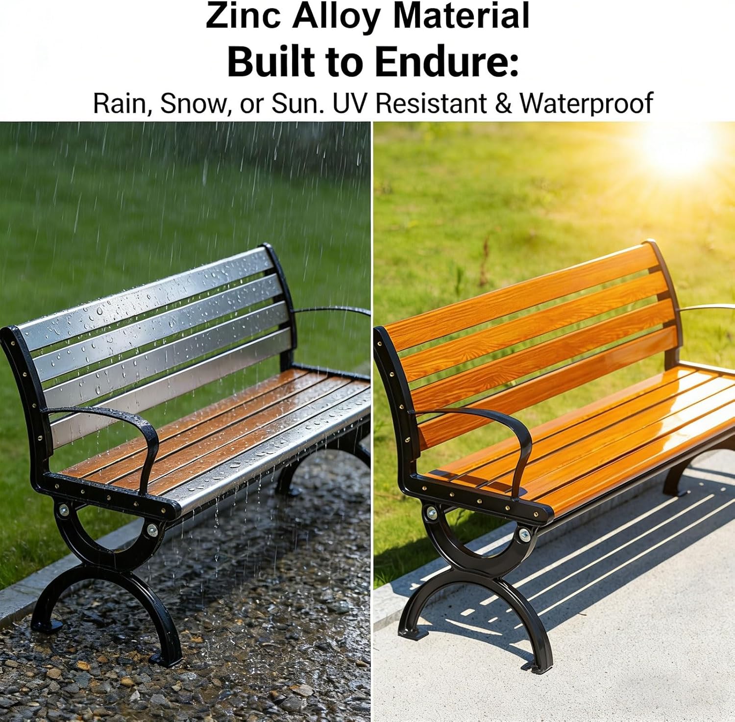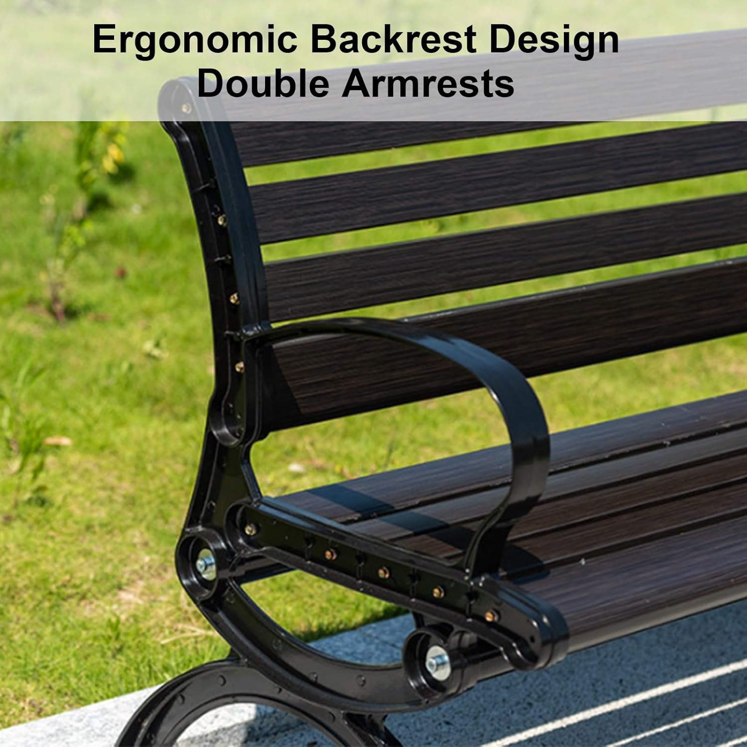 DescriptionOur outdoor garden bench transforms your outdoor space into a relaxing area. This bench combines durability and style, making it a perfect addition to your garden, patio, park, or backyard.Easy to clean simply wipe it with a damp cloth for a pristine finish. Maintenance every 7 days extends its lifespan.Double armrests provide support whether you're standing or sitting.Pre drilled holes at the bottom and included screws prevent movement.Suitable for:pavilion gardens, beachfront residences, front pedestrian/entrance halls, public spacesProduct Specifications:Name: Outdoor Bench with Armrests/Garden Outdoor BenchMaterial: Cast Iron, Zinc AlloyColors: Black, Brown, RedDimensions:47x20x28in, accommodates 1-3 people, weight capacity approx. 660lbs, bench weight 34lbs59x20x28in, accommodates 1-3 people, weight capacity approx. 837lbs, bench weight 46lbs71x20x28in, Capacity: 1-4 people; Weight capacity: approximately 1014lbs; Bench weight: 55lbsAssembly time: Approx. 15 minutesSurface finish: Hand polishedPaint treatment: Waterproof, rustproofPackage includes:1 x Outdoor garden bench1 x Accessory pack1 x Instruction manual