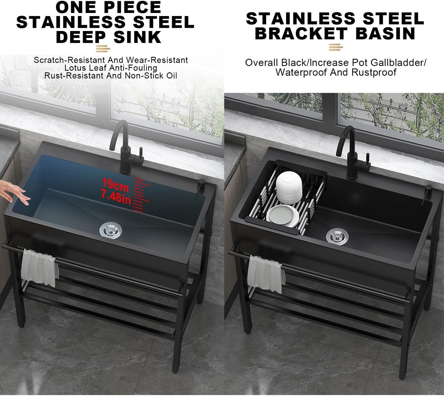 Laundry Stainless Steel Sink Commercial Restaurant Kitchen Set Black Outdoor Utility Sinks Utility Free Standing Dining Room with Faucet,Unlike the satin finish, brushed finish covers scratches better and complements your kitchen utensils perfectly. A cleverly designed drain cover sits on top of drain, hiding waste collection basket underneath while allowing water to flow under it. Seamless Cleaning R-shaped round corner round-edge inner design. Every is well-designed, glossy surface, cleaning can become easy. Hot Cold Water Faucet It a complete version Hot&Cold Faucet. It helps handle most laundry or patio job within winter summer hot cold water. Rapid Draining Drain hole large diameter, able up in blink an eye. Appropriate allow simple storage. Product Description: The Sinks Basin Is Integrally Formed By Gravity Stamping, And Welding Refused To Avoid Problems Such As Leakage Peeling In The Future. Outdoor Catering Are Widely Used. Whether An Indoor Family Or Picnic, Ideal Choice For Clean Meal. Specification: Scope application It perfect for hand washing food, fruits vegetables, any kitchen, bar, restaurant, dessert shop, clean room, cafeteria, garage other commercial location. Specification: Material:stainless steel,Packaging Information,Round tee faucet,water inlet hose,drain basket,Mounting,Accessories,soap dispenser Note: 1. Only wall-mounted folding tables are sold, products shooting props. 2. Due influence monitor light, actual color product may be slightly different from shown picture. Thank you! 3. manual measurement, please measurement devia