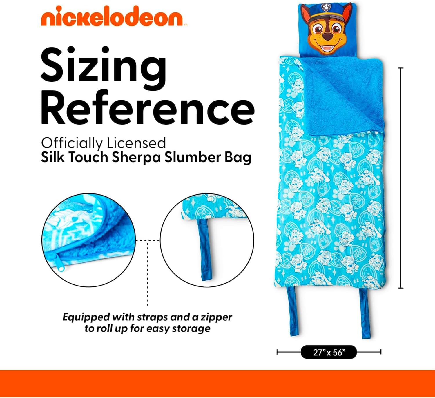 | Size | 27" x 56" Paw Patrol Sleeping Bag with Pillow |