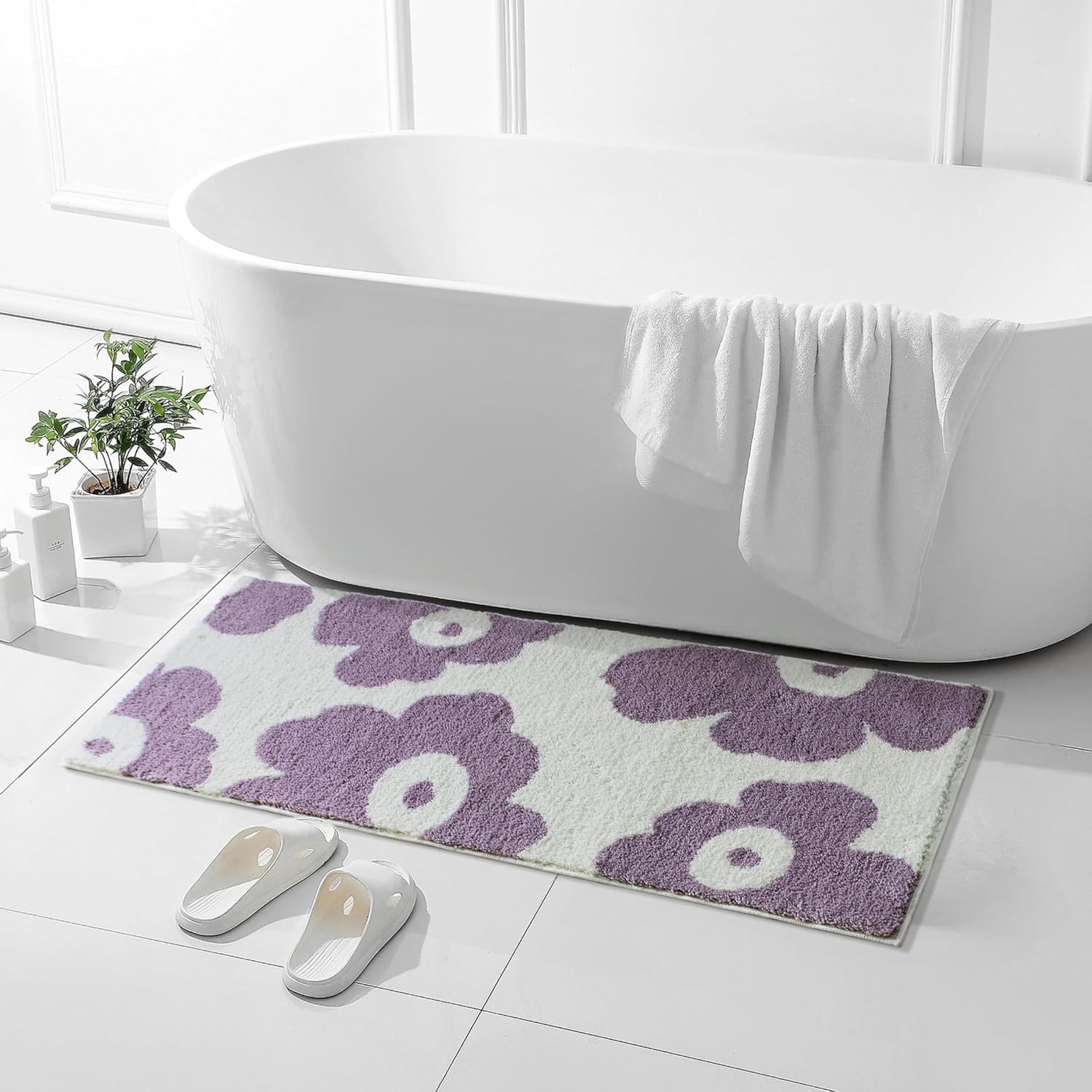 This bath floor mat has a very beautiful design, which is designed as cute purple flowers. Exquisite and unique, fresh and romantic, fashionable and simple, can be matched with any decorative style room, allowing you to enjoy warm and romantic modern life.