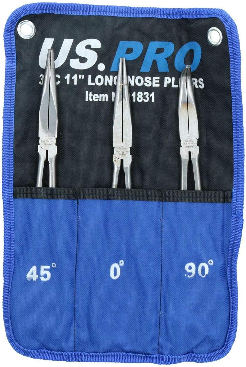 Combination Set Specifications: Manufactured from chrome vanadium steel for strength and durability. Drop dipped handles for comfort and grip when using. Supplied in a canvas tool roll for easy storage and transportation. Includes; Combination Plier Diagonal Side Cutting Plier Long Nose Plier Long Nose Set Specifications: 3pc Long Nose Pliers set Manufactured from chrome vanadium steel for strength and durability Soft grip handles for comfort and grip Extra long set for getting into hard to reach areas. Total length of the pliers 11" 280mm Complete in a handy pouch for storage and transportation. Set includes the following: Straight nose long nose pliers total length 11" 45 degree long nose pliers total length 11" 90 degree long nose pliers total length 11"