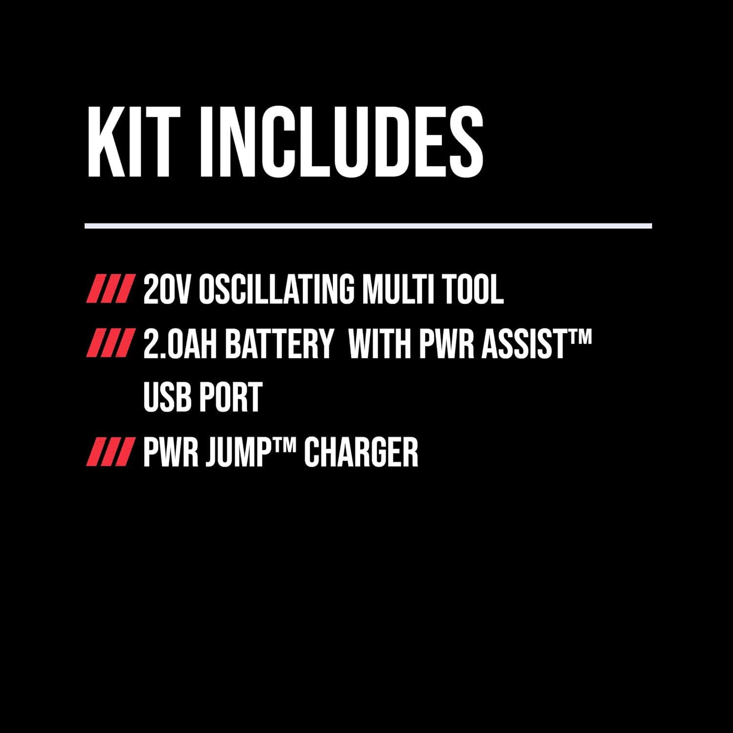 | Item Type Name | PWR CORE 20 Brushless 20V Oscillating Tool Kit with 35pcs Sanding Paper, 3 Blades, Sanding Pad, Rigid Scraper, Accessory Case, Includes 2.0Ah Lithium Battery & PWR JUMP Charger |
