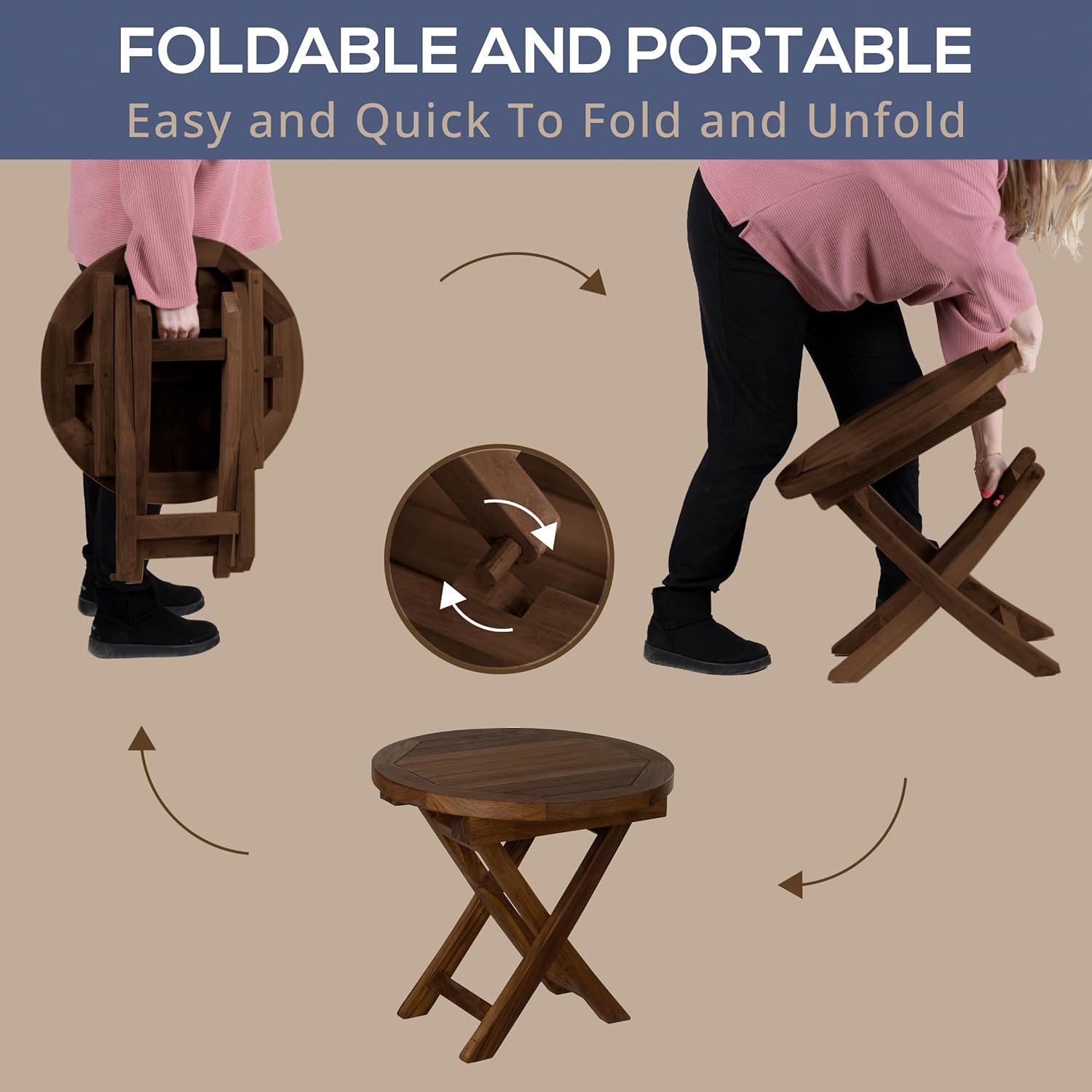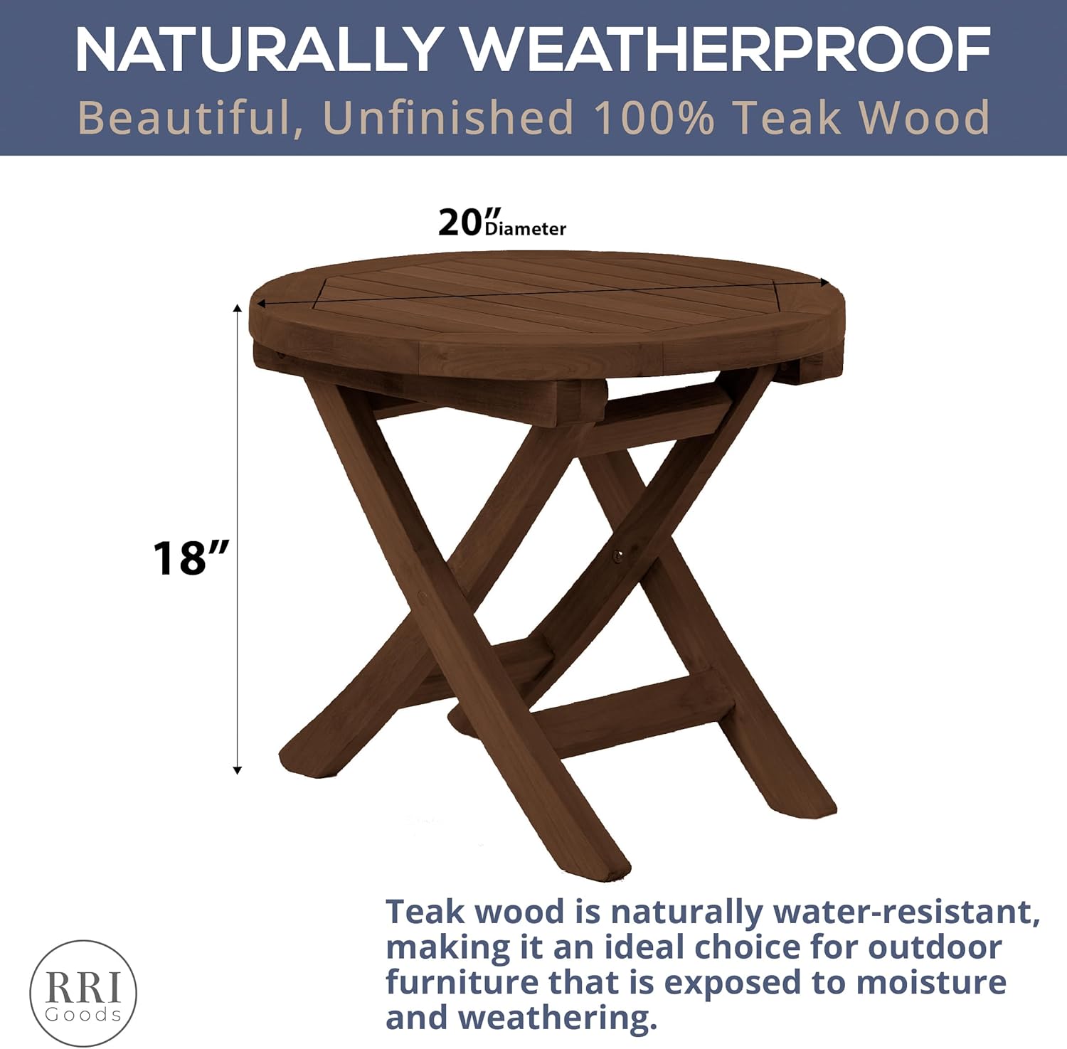 Elevate your outdoor experience with the RRI Goods Teak Wood Folding 20” Round Coffee Table. Expertly crafted from premium Grade A Indonesian teakwood, this table combines portability with timeless elegance. Its natural resistance to weathering and decay ensures long-lasting durability, making it ideal for both indoor and outdoor use. Designed with convenience in mind, this table folds easily for storage and transport, making it the perfect companion for camping trips, picnics, and outdoor entertaining. The round tabletop features a teak oil finish that enhances the wood’s natural grain, adding warmth and charm to any setting. Measuring 20 inches in diameter and 18 inches in height, it’s the perfect size for enjoying coffee, snacks, or decor. Whether you’re creating a cozy nook on your balcony or setting up a stylish backyard retreat, this teakwood table is a versatile and functional addition to your space.