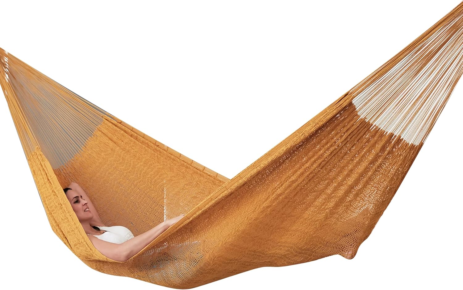 The Hammock is 100% hand-woven with thick cotton thread, this type of thread stretches so the body of the hammock will adapt to the shape of your body, you will hang in a cocoon of comfort.