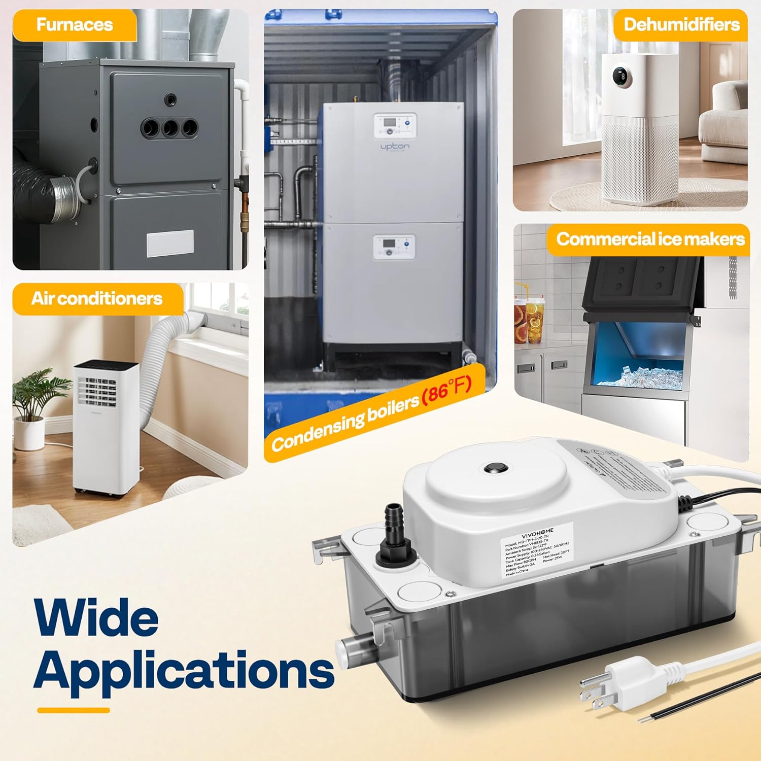 | Included Components | Condensing Pump, Filter Housing, L-shaped Silicone Tube, Clamp × 2, Screw ×2, Silicone Adapter × 2, Expansion Plug ×2, Water Outlet Tubing |