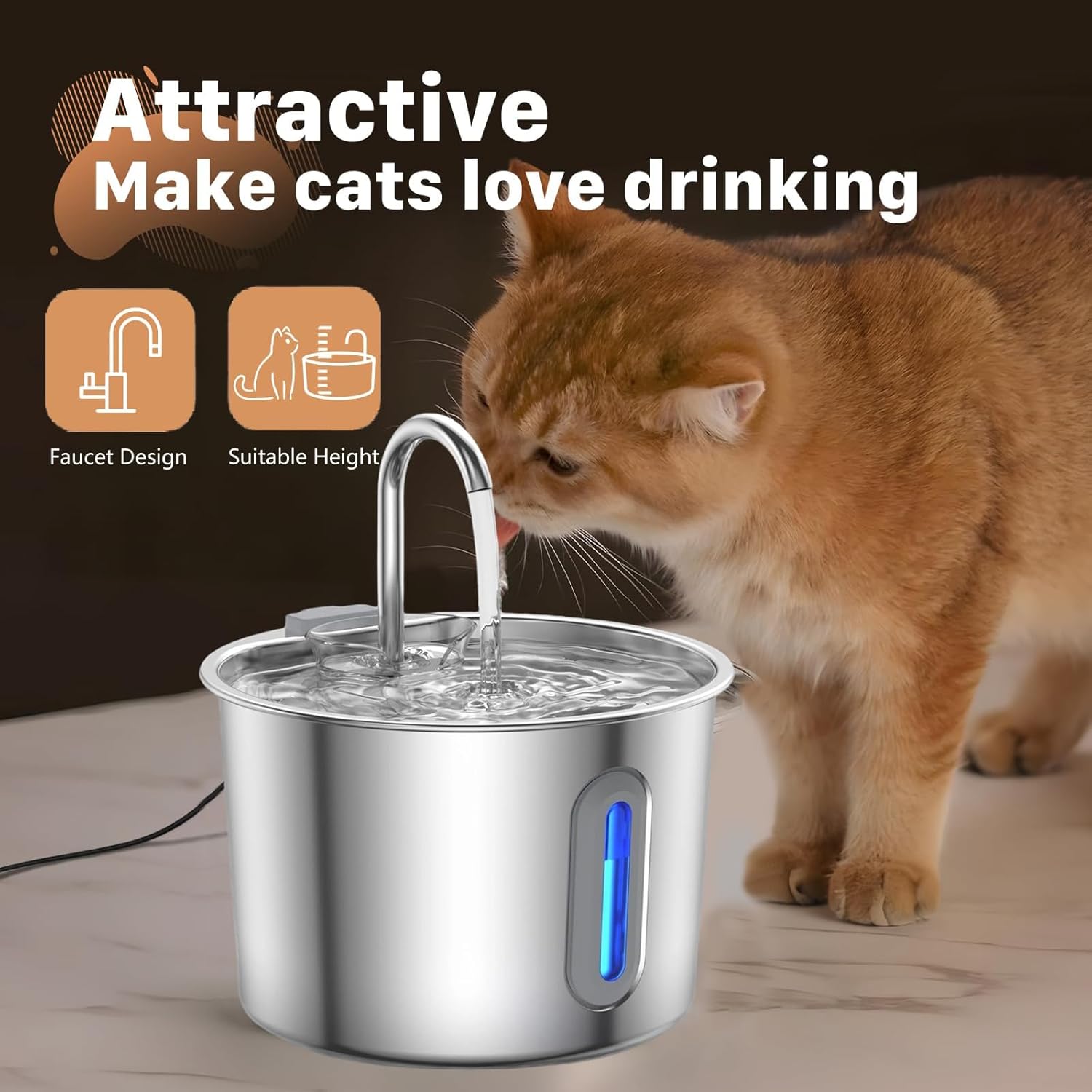 Water Dispenser Mute Working Automatic Pet Fountain Dogs Waterer for Indoor Pet Easy to DrinkingFeatures:Cats love flowing water! This automatic water fountain is suitable for dog, and multiple pet, our automatic water dispenser is perfect for households with furry pet. Safe Stainless Steel : safe and long time use. Quiet working: It will not disturb you and your pet to rest.Large capacity: 2200ml, suitable for different age of cats, dogs and various pet households. Therefore you could go out for several days without worrying.It is suggested that the inside of the watertank should be washed regularly. Specifications:Component: Stainless Steel Size: approx.17.9x11.8cm/7x4.65inch Capacity: 2200ml Quantity: 1 pcType: USBPackage Includes:1 Pc Pet Water Dispenser(USB)Note:Please allow 1-2cm errors due to manual measurement. Due to the differences between different monitors, the picture may not reflect the actual color of the item.