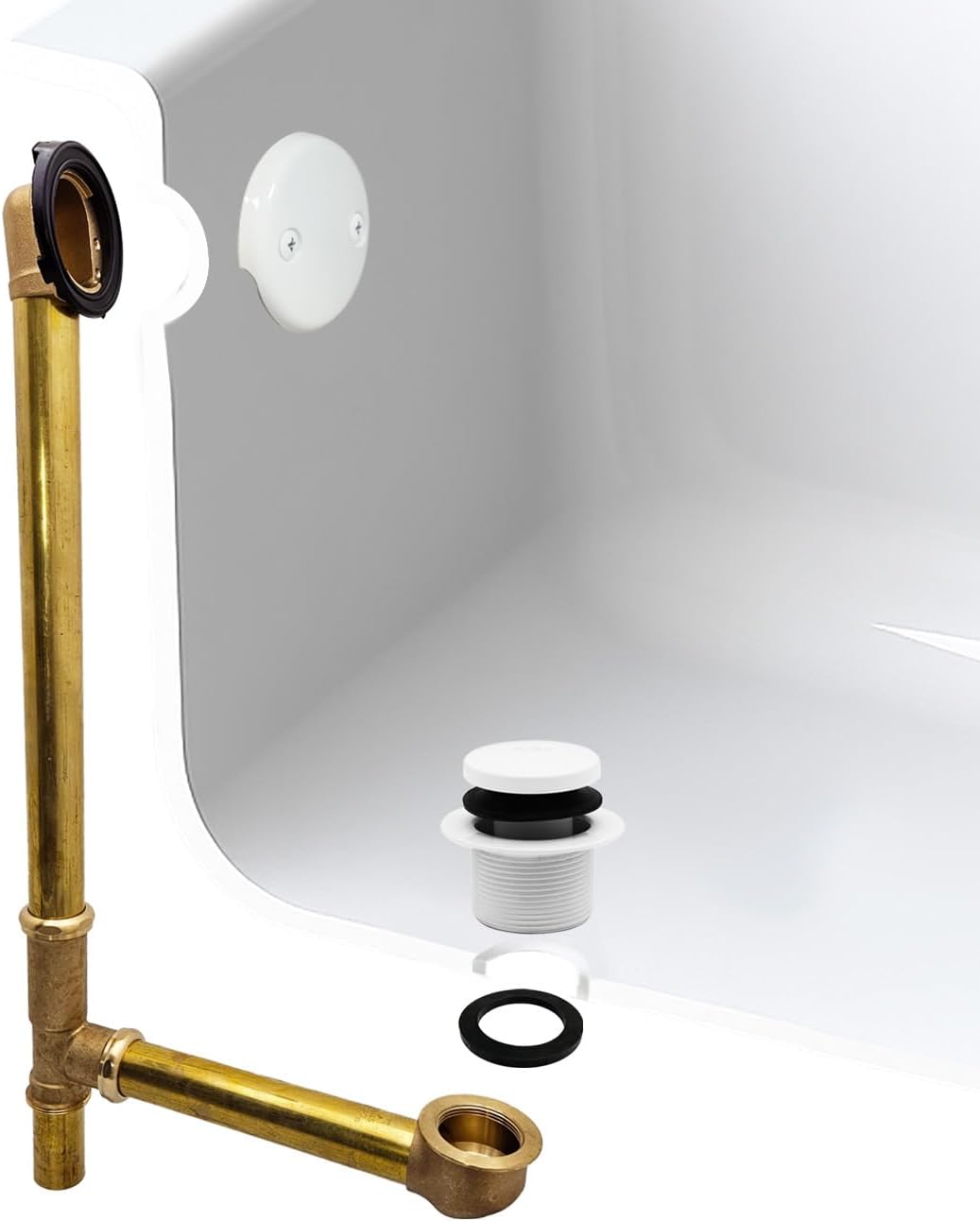 This Westbrass bath waste and overflow assembly provides a reliable, heavy-duty drainage solution for standard bathtub installations. Constructed with 17 gauge brass tubing and designed for a 22-1/2 inch maximum make-up, this 1-1/2 inch tubular system ensures long-lasting structural integrity and leak-resistant performance. The included tip-toe drain plug offers effortless foot-operated control—simply press to close and press again to open. A traditional two-hole faceplate mounts securely using two 1/4 in.-20 x 1-1/2 in. plated brass screws, offering compatibility with most overflow elbow configurations. The kit also features solid brass elbows, tee, and shoe fittings with half-ferrules included for complete installation. With its durable construction and classic design, this assembly is ideal for both residential and commercial use. Be sure to check out our other model styles and VISIT OUR WESTBRASS STOREFRONT for more Kitchen and Bath items to stylize your home with convenient functionality and beauty.