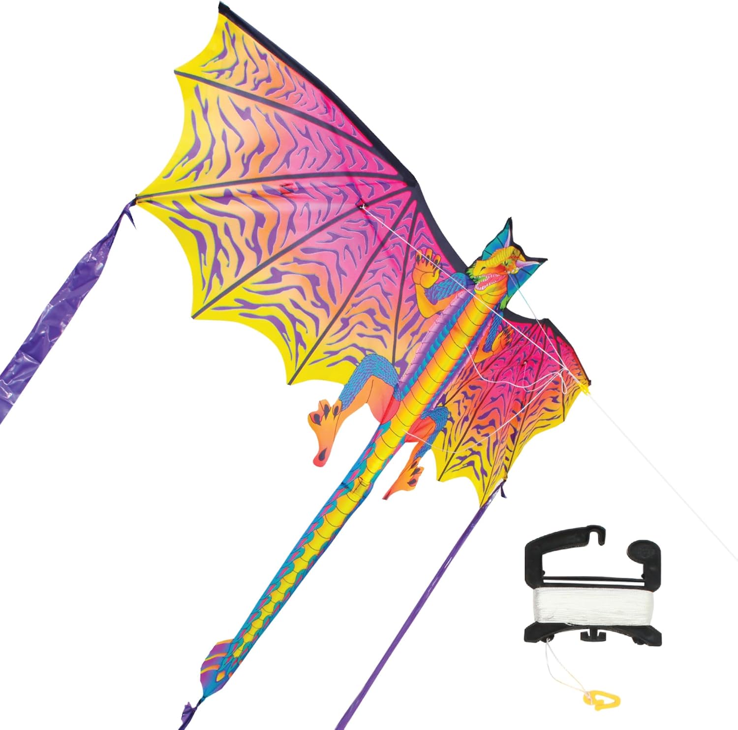 | Included Components | 175ft of 25lb Kite Line w/ QuikClip®, Fiberglass Airframe, Kite Handle, Mystic Dragon SuperSize 2-D Ripstop Nylon Dragon Kite Sails, SkyTails® |