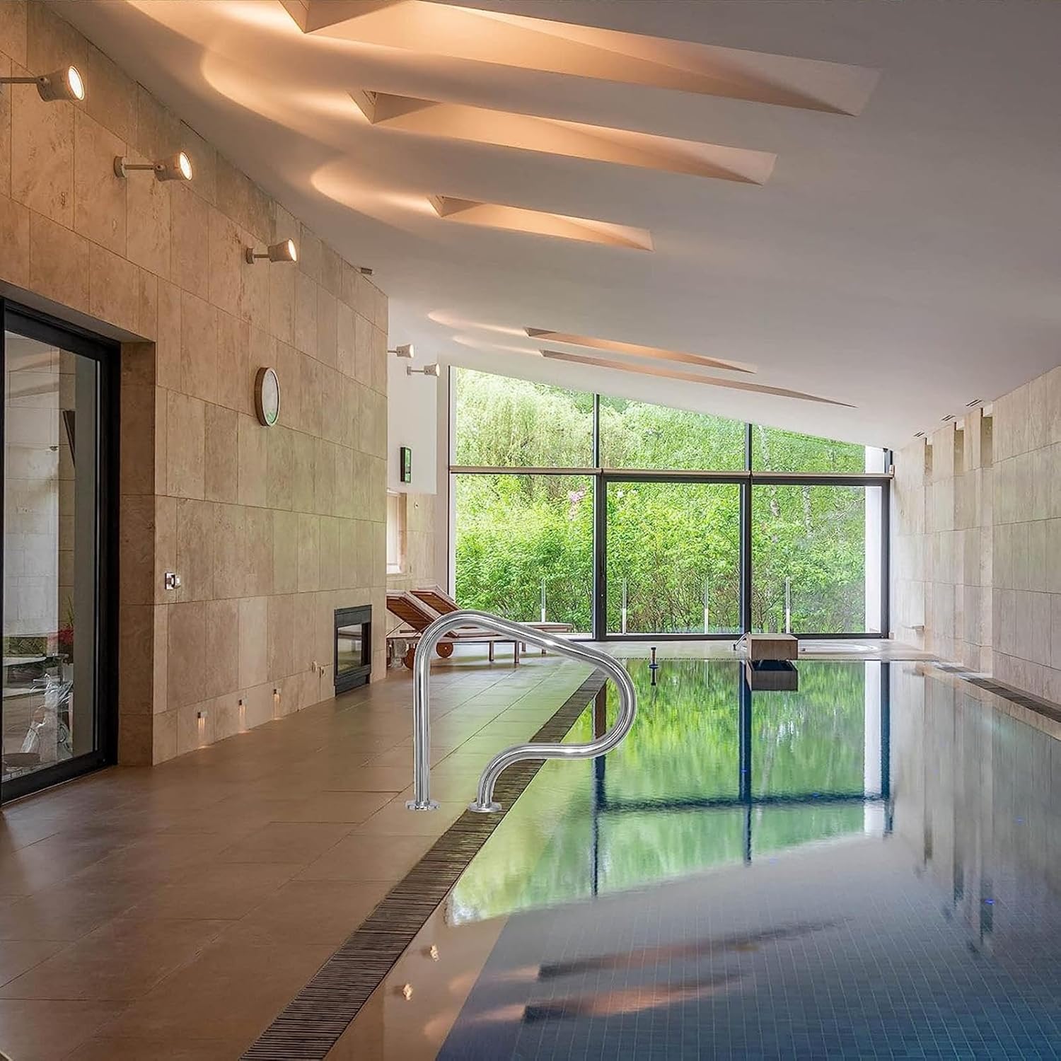 GIVE AWAY 4FT NYLON GRIP COVER : 4ft (122x12cm) (L x H); 4ft nylon handle cover ensures a comfortable surface to hold while providing excellent grip.Pool Handrails for Inground The pool step rail is made of solid stainless steel, remaining free of rust and stain for years to come. The rail comes with all of the necessary hardware. Installation took less than an hour. Key FeaturesGreat Performance The pool safety handrail has a capacity of 440lb for providing strong support. 304 Stainless Steel The inground pool handrail is constructed with 304 high-strength stainless steel. It is not easy to deform and bend with a tube of 1.1 mm thickness.Simple to Install The rail comes with all of the necessary hardware. Installation took less than an hour. Humanized Design The pool rails for inground pool is designed with humanized curve for convenient grasp. It will give you fabulous experience by decorating your swimming pool. Multiple Functions The spa handrail is the most cost-efficient choice for various places, which is suitable for swimming pool, sloped entry, spa, water park, etc. SpecificationsMaterial: 304 Stainless SteelLoad Capacity: 440 lbs/200 kgTube Diameter: 1.65"/4.2 cmProduct Weight: 11 lbs/5 kg Package Include: 1 x Swimming Pool Handrail 1 x Instruction