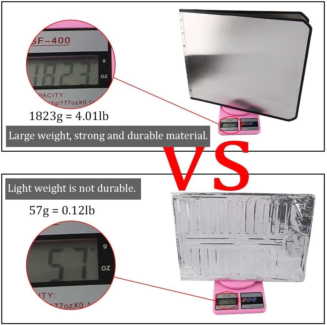 The non-stick splash guard keeps cooking surfaces, counters, walls and floors free grease splashes. Two hinged plates unfold and surround your pans and pans to provide a high protective barrier against hot, harmful grease. The black rubber coating prevents finger damage. The non-stick surface is easy to clean and makes cleaning up in the kitchen a breeze. Folds flat when not in use. The splash guard prevents burns, messy cleaning and is designed to protect walls when using a mixing bowl. Available size and quantity are: 40 x 30 cm / 15.7 inches x 11.8 inches (L x W), 2 pieces. 40 x 38 cm / 15.7 inches x 15 inches (L x W), 1 piece. 45 x 38 cm / 17.7 inches x 15 inches (L x W), 1 piece. 30 x 15 cm / 11.8 inches x 5.9 inches (L x W), 1 piece. 30 x 20 cm / 11.8 inches x 7.9 inches (L x W), 1 piece. 30 x 20 cm / 11.8 inches x 7.9 inches (L x W), 2 pieces. 40 x 30 cm / 15.7 inches x 11.8 inches (L x W), 1 piece. Attention: Different sizes for different ovens, different heights can achieve different effects of oil control. You should pay attention to the overall size and folding size of our products and buy them according to your own needs. Thank you. The black rubber film is not adhesive. Solving is a normal phenomenon. The steel plate is handmade and it is difficult to avoid scratches during production. Customers who cannot accept the above facts buy carefully. Thank you. Notes: 1. Due to the light and screen setting difference, the item's color may be slightly different from the pictures. 2. Please allow 2-3% difference due to different manual measurement. 3. This kitchen wall splash guard must be at a distance of approx. 50 cm of the fire source to prevent melting of the black rubber.
